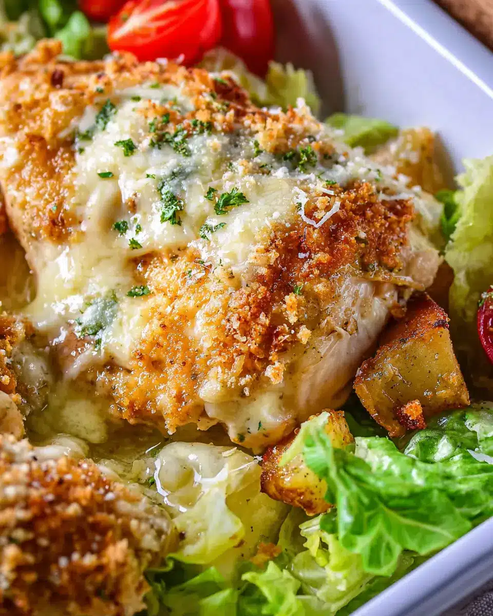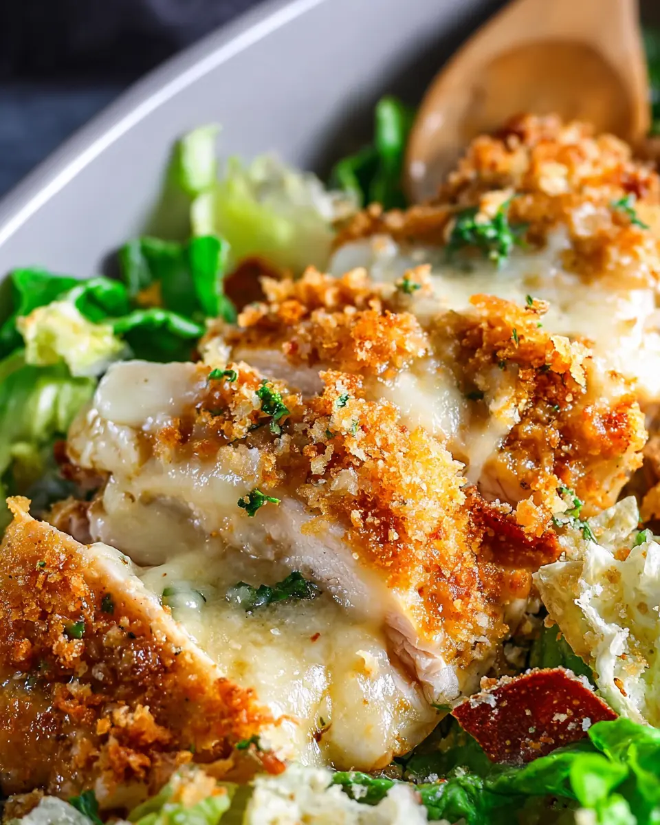 In summary, baked caesar chicken is a delightful dish that combines simplicity with flavor for a perfect weeknight dinner. With juicy chicken topped with creamy dressing, provolone, and crunchy croutons, this recipe will impress your family and friends. Don’t forget to share your culinary masterpiece on Instagram!