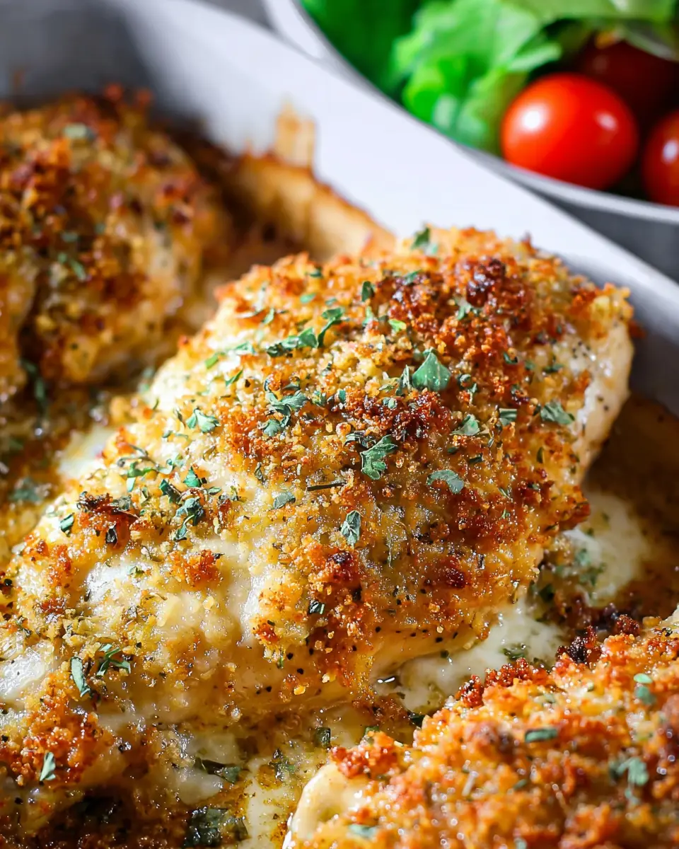 Fresh Salad: A crisp Caesar salad complements the rich flavors of the chicken. Toss romaine lettuce with parmesan, croutons, and a light drizzle of creamy Caesar dressing for crunch and freshness.