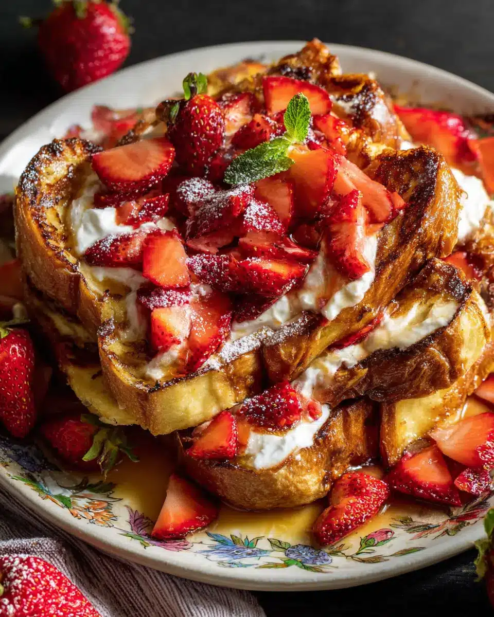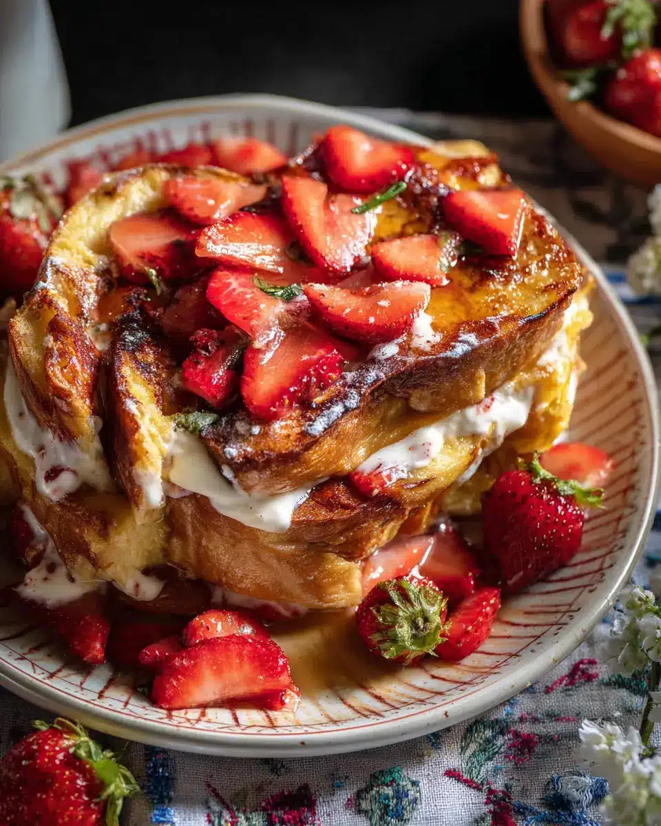 When it comes to elevating your baked strawberry cream cheese stuffed French toast, the possibilities are endless! Consider topping your warm slices with a dollop of freshly whipped cream or a sprinkle of powdered sugar for an indulgent touch. You can also add extra fresh strawberries on top or try drizzling a generous amount of maple syrup for that classic, sweet finish. For a twist, a light drizzle of honey or some crunchy granola can introduce an interesting texture and flavor.