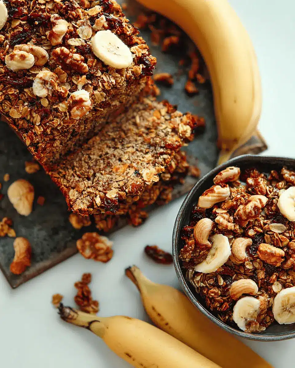 Topping your banana bread granola can be as fun as making it! Try adding fresh banana slices, a dollop of almond or peanut butter, or a sprinkle of coconut flakes. For an extra crunch, consider adding pumpkin seeds or dairy-free yogurt. The options are endless, so feel free to get creative and make it your own!