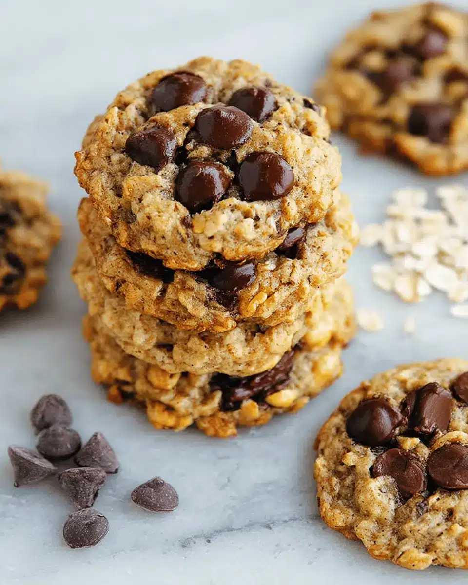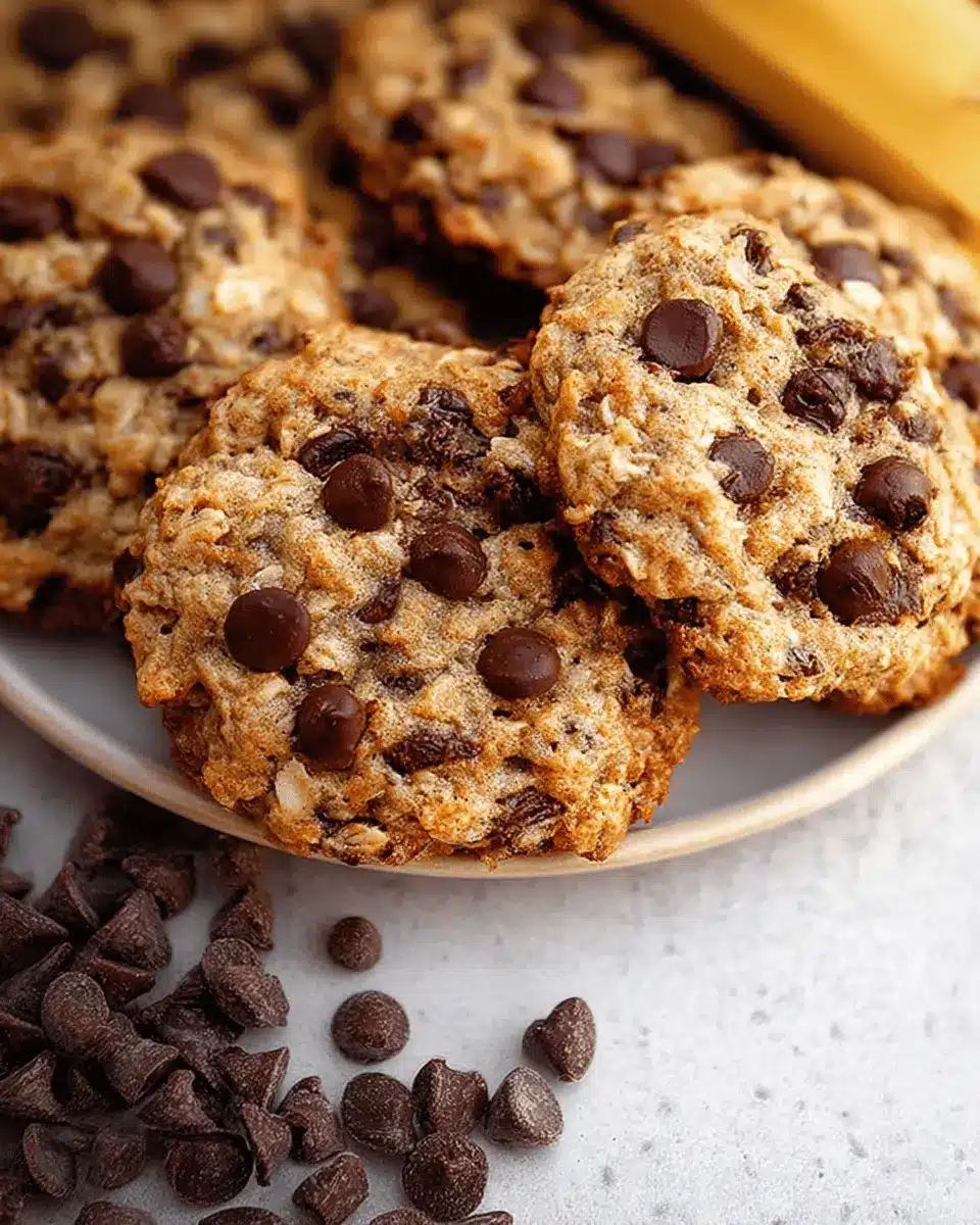 The key to perfect banana oatmeal chocolate chip cookies is knowing when to take them out of the oven. Look for a golden-brown edge and a soft center—if the edges are set but the center still looks slightly underbaked, they are ready! They will firm up as they cool, so don’t worry if they seem a bit too soft right away.