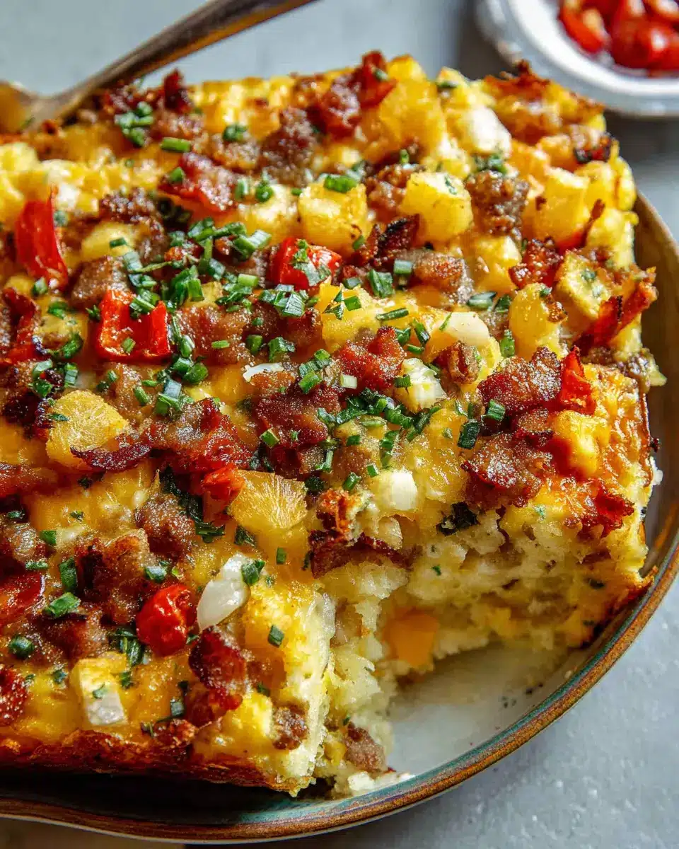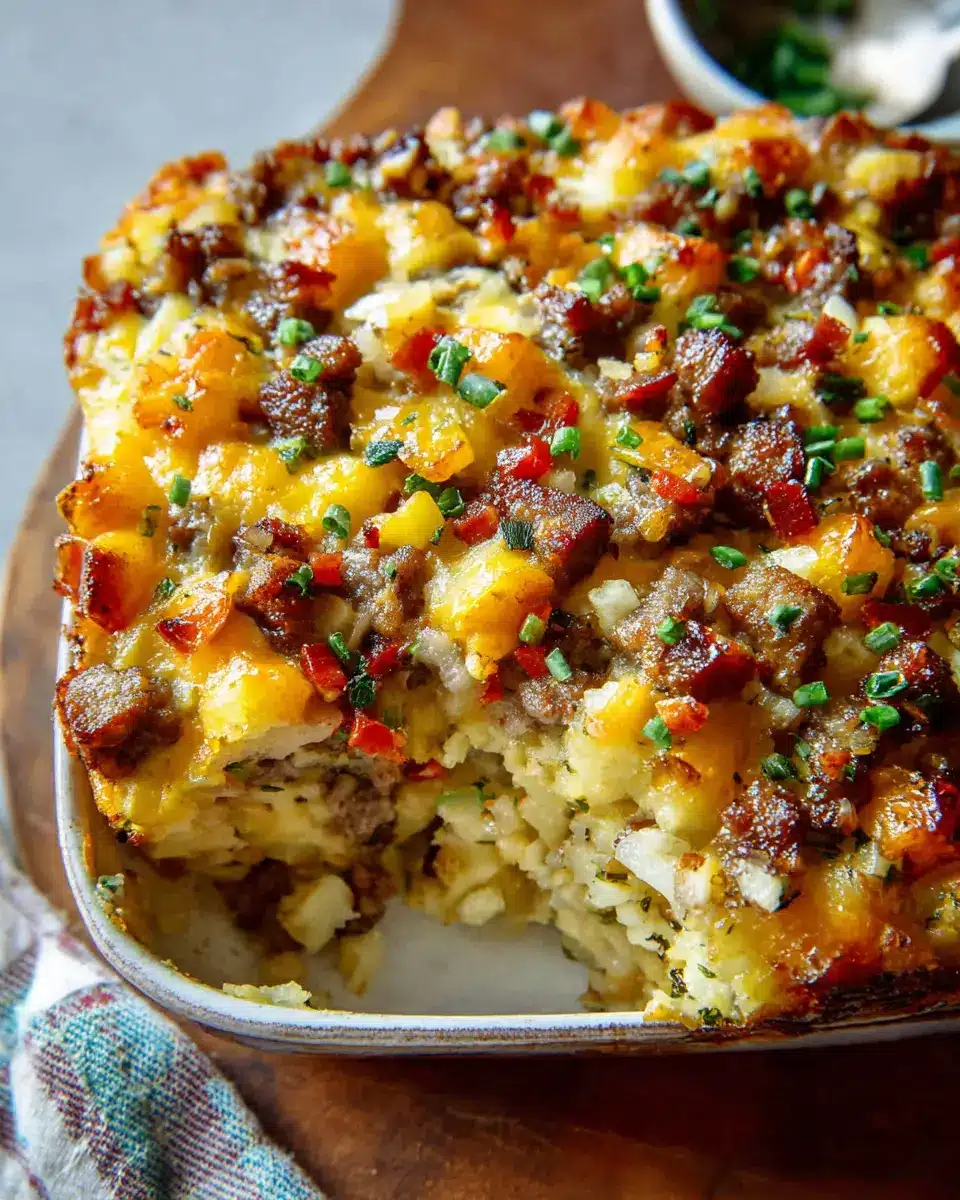 Lastly, garnish with the remaining chives and freshly cracked black pepper before serving. Trust me, your morning routine is about to get a major upgrade with this fantastic breakfast casserole!