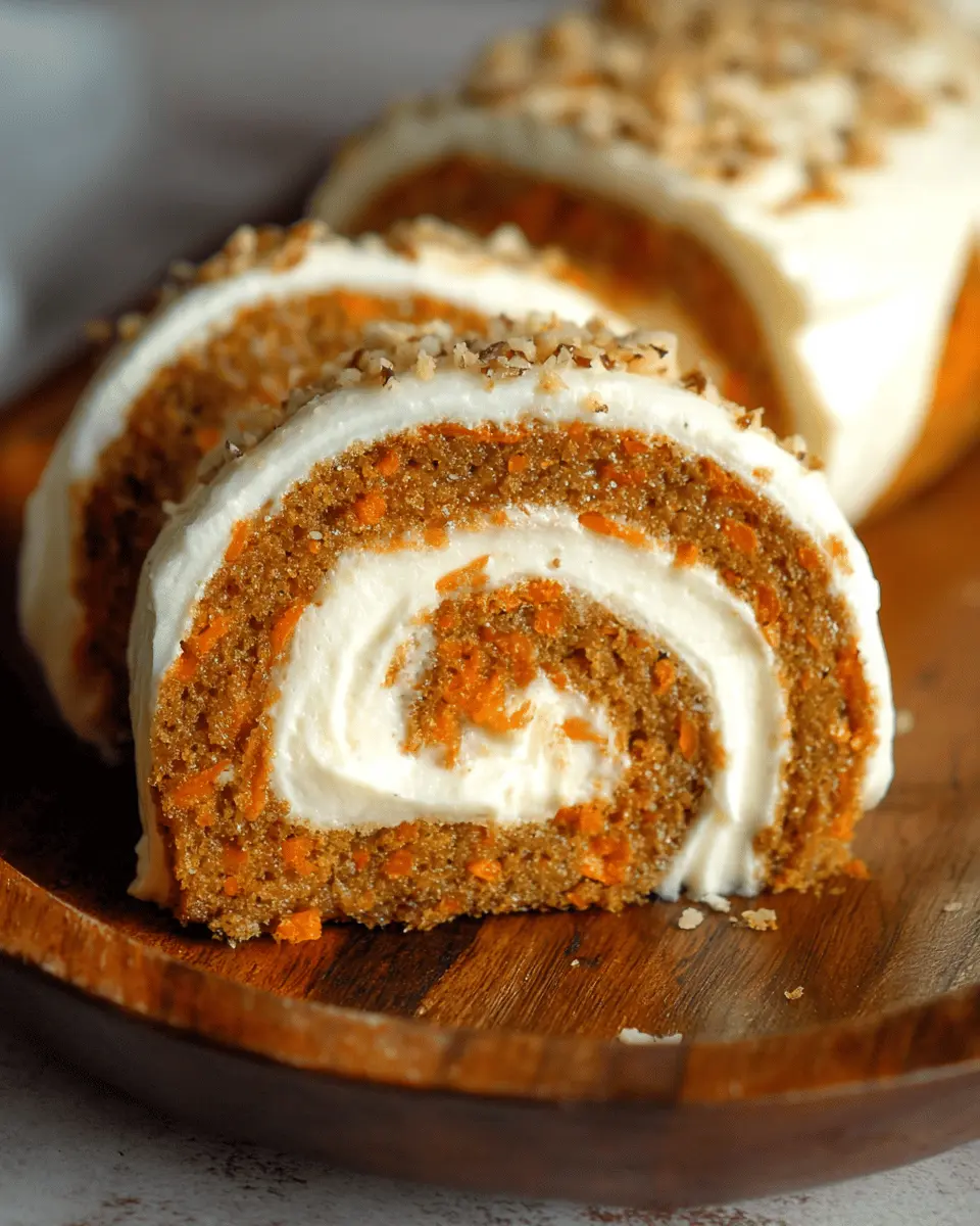 This delectable roll not only looks stunning but also packs a punch with its warm spices and the natural sweetness of freshly shredded carrots. The combination of spices—cinnamon, ginger, and nutmeg—brings warmth, while the cream cheese frosting adds a creamy, tangy layer of indulgence. Plus, the rolled shape makes it easy to serve, allowing you to slice it into beautiful portions.