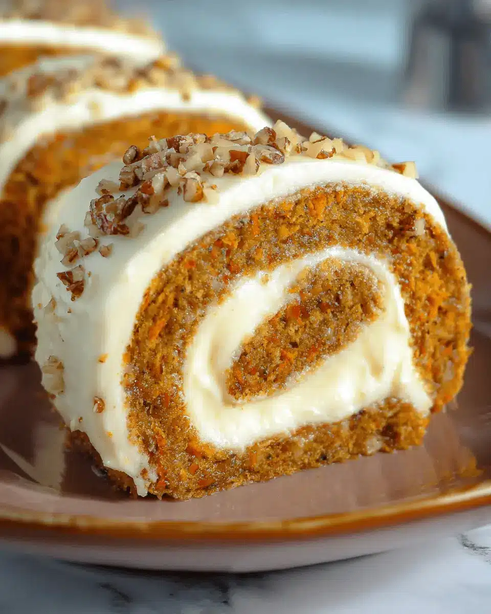 For nut lovers, consider folding in chopped walnuts or pecans into the batter before baking. This adds a delightful crunch and depth to your carrot cake roll. You can also sprinkle some nuts onto the cream cheese filling for an added layer of texture—sure to impress at your next gathering! Not to mention, nuts provide essential nutrients, making your dessert a tad more wholesome.