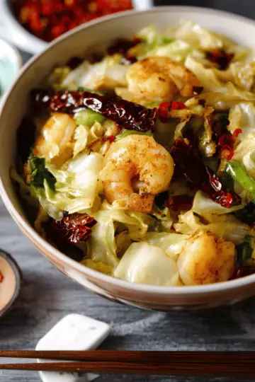 Cabbage Stir Fry with Shrimp and Dried Chiles