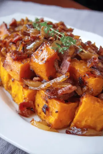 Maple Glazed Sweet Potatoes with Bacon and Caramelized Onions