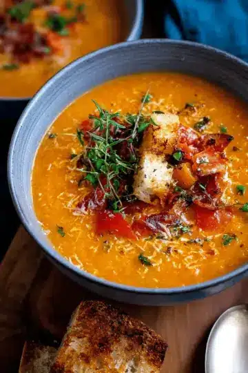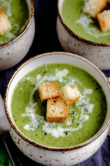Creamy Spinach Soup with Parmesan Croutons