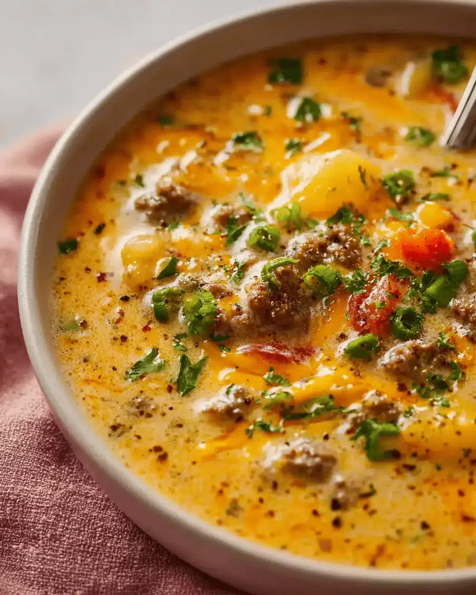 Absolutely! You can prepare the cheeseburger soup ahead of time and store it in the refrigerator for up to three days. Just reheat it gently on the stove before serving. For best results, consider storing the cheese separately and adding it during the reheating process to maintain that creamy, melty texture. If you’d like to keep leftovers even longer, you can freeze the soup for up to three months. Just be sure to let it cool completely before placing it in an airtight container.