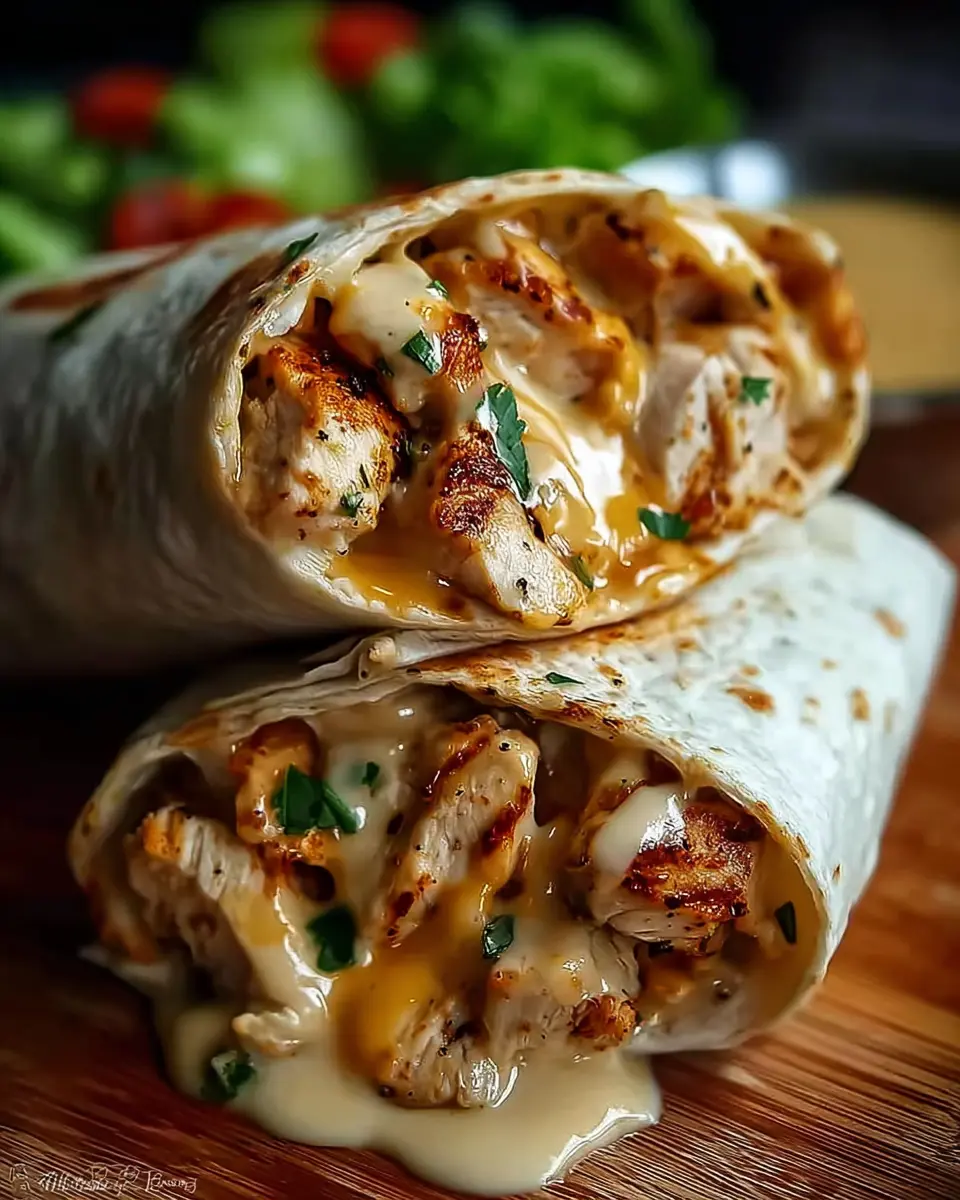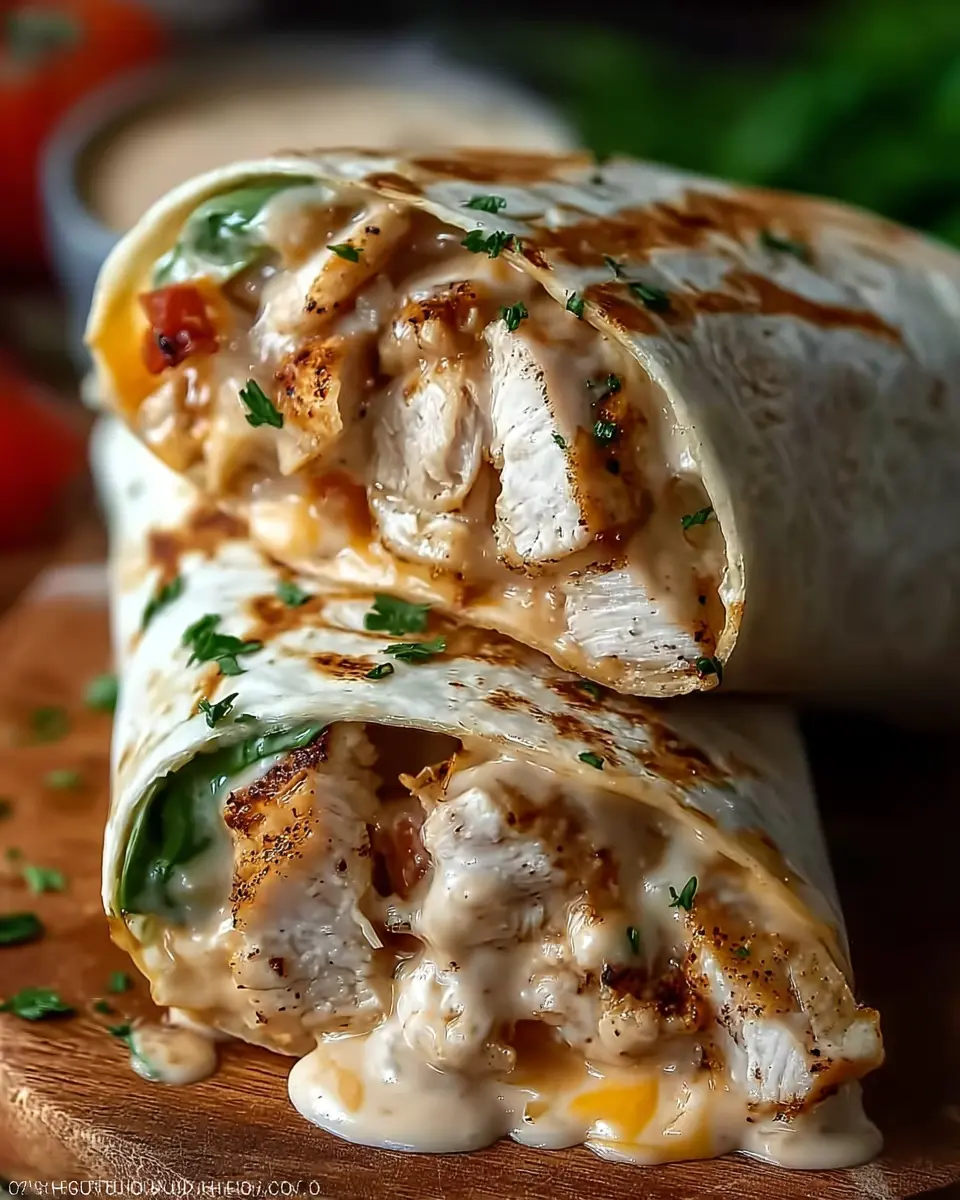 Veggie-Loaded Cheesy Garlic Chicken Wraps