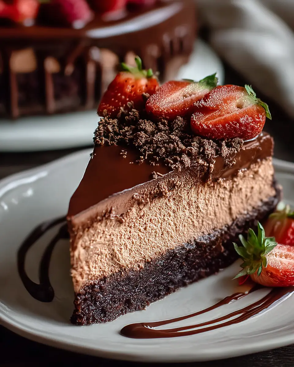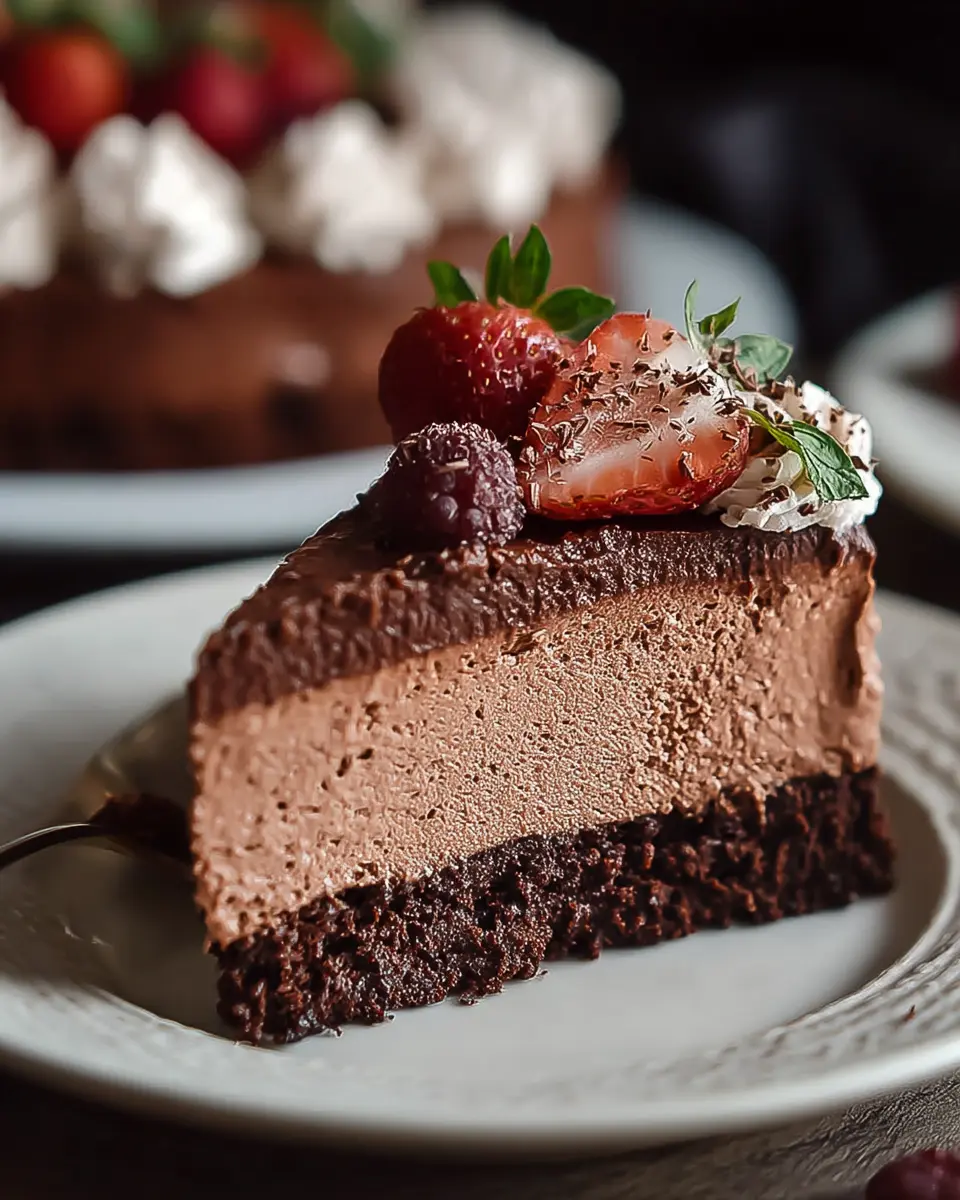 When it comes to serving your delightful chocolate mousse cake, consider pairing it with a few simple yet elegant accompaniments to elevate the experience. Fresh berries—such as strawberries, raspberries, or blueberries—add a burst of color and a refreshing contrast to the rich chocolate. A dollop of whipped cream creates a creamy texture that complements the cake beautifully.