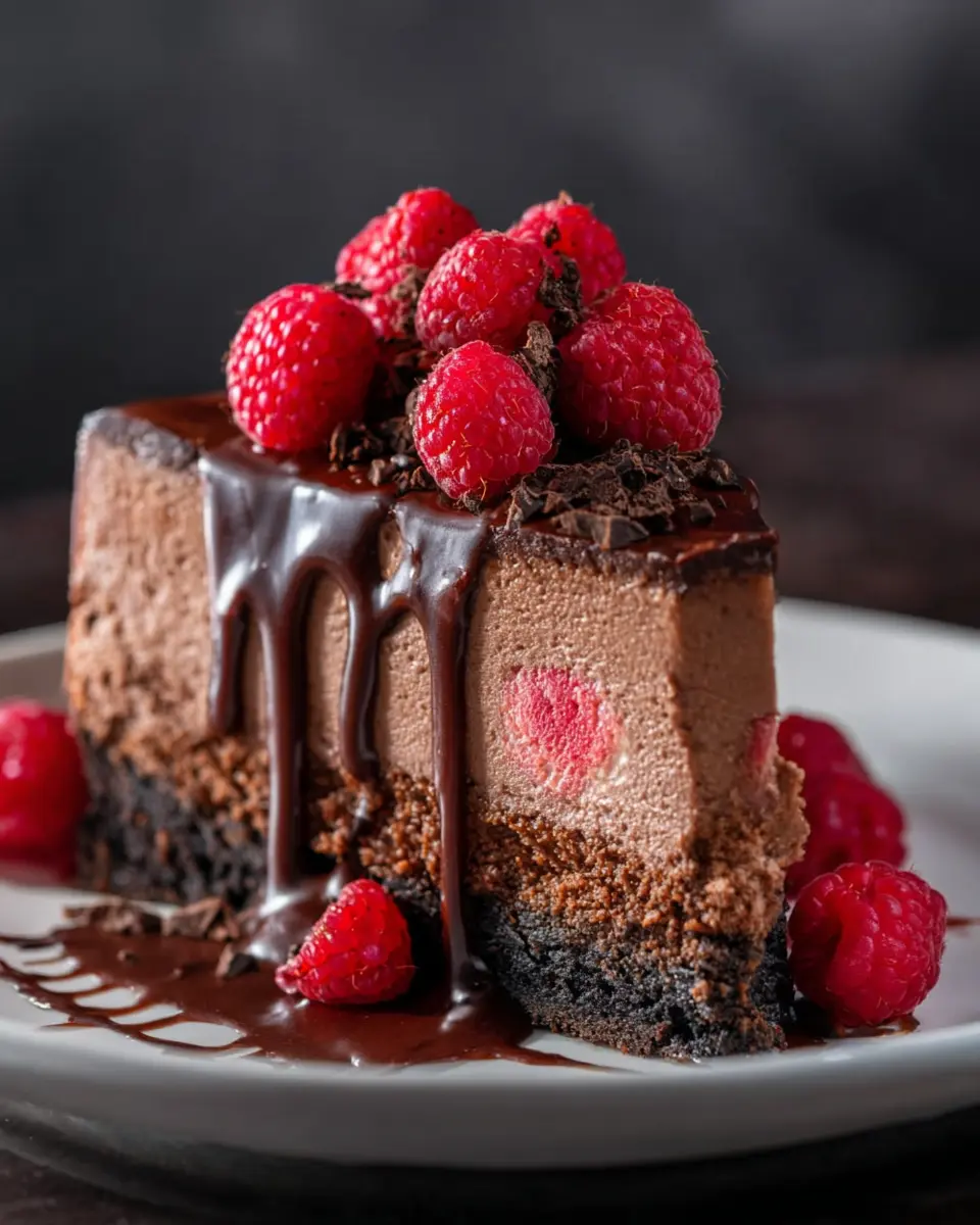 When it comes to impressing your guests, the presentation of your chocolate raspberry cheesecake is key! For a stunning visual, drizzle chocolate sauce generously over the cheesecake before serving. Top it with fresh raspberries and a light dusting of cocoa powder for that gourmet touch. If you're serving it at a gathering, consider slicing it into individual portions on vibrant plates for a personal feel. Serve each slice with a side of whipped cream or a scoop of vanilla ice cream to elevate the experience even further!