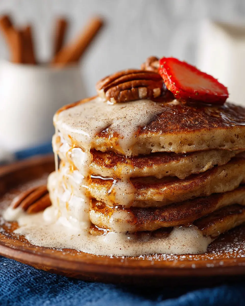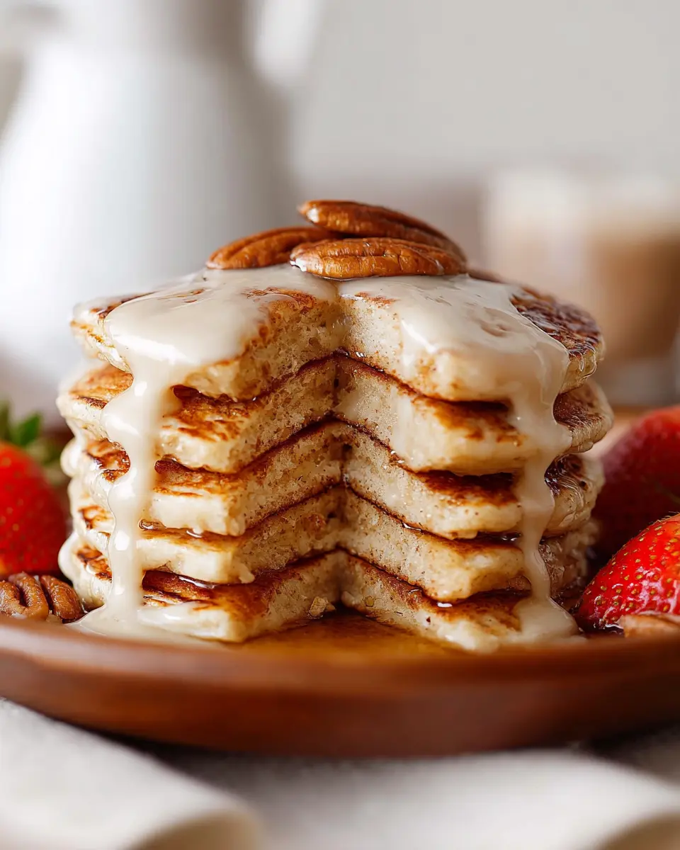 Serve these divine pancakes topped with your creamy glaze, and enjoy a breakfast that feels indulgent yet is surprisingly easy to make. Happy cooking!