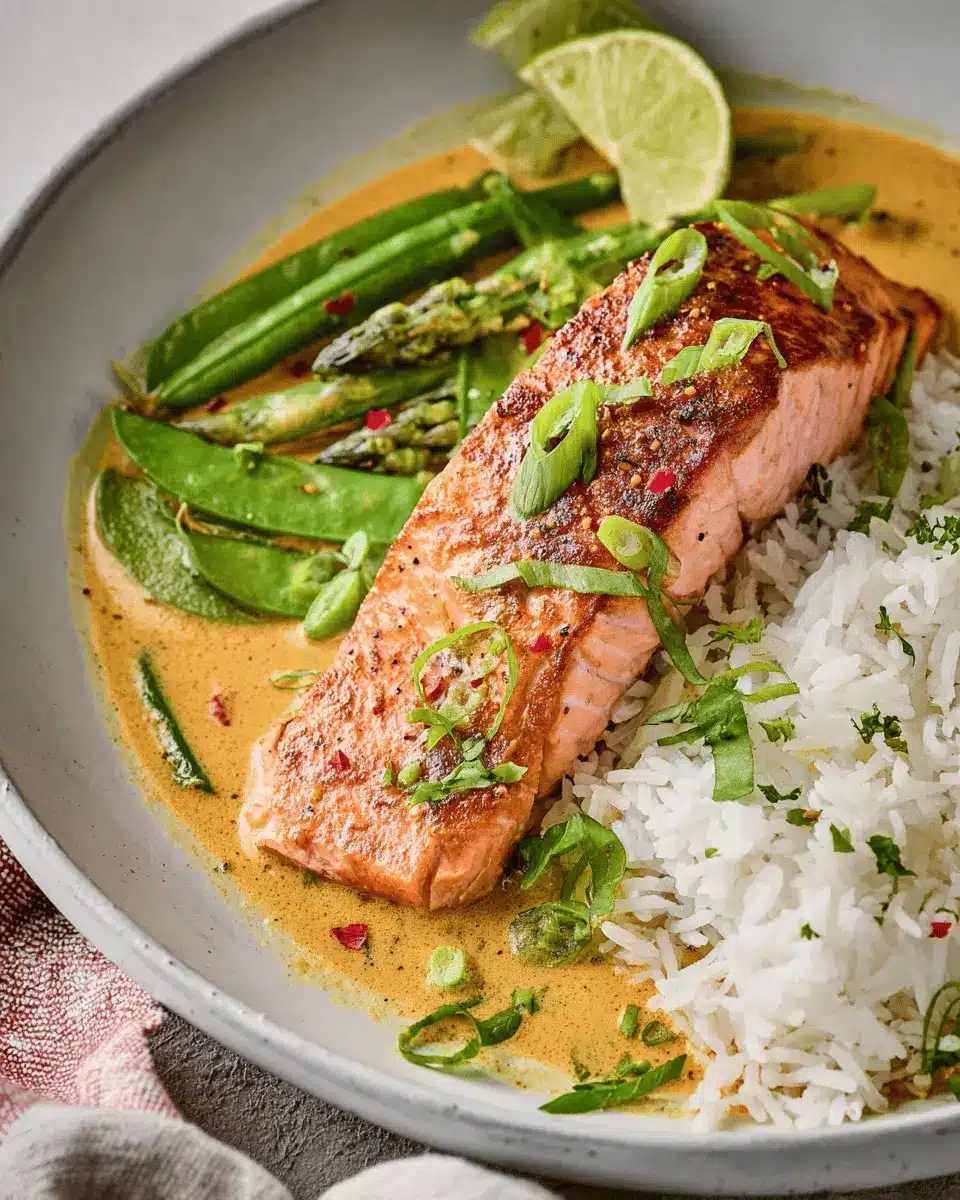 Pair your Coconut Curry Salmon with side dishes that enhance its flavors. Consider serving it with: