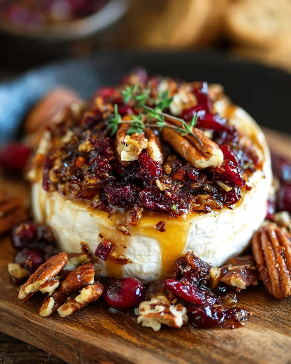 Want to elevate your cranberry pecan baked brie? Consider switching up the toppings! Try a mixture of caramelized onions and fresh thyme for a savory twist, or top it with sliced apples and a drizzle of honey for a touch of sweetness. You can even opt for a festive cranberry salsa with jalapeños for a zesty kick. Explore texture and taste through roasted nuts like walnuts or hazelnuts, which add crunch and unique flavor profiles.