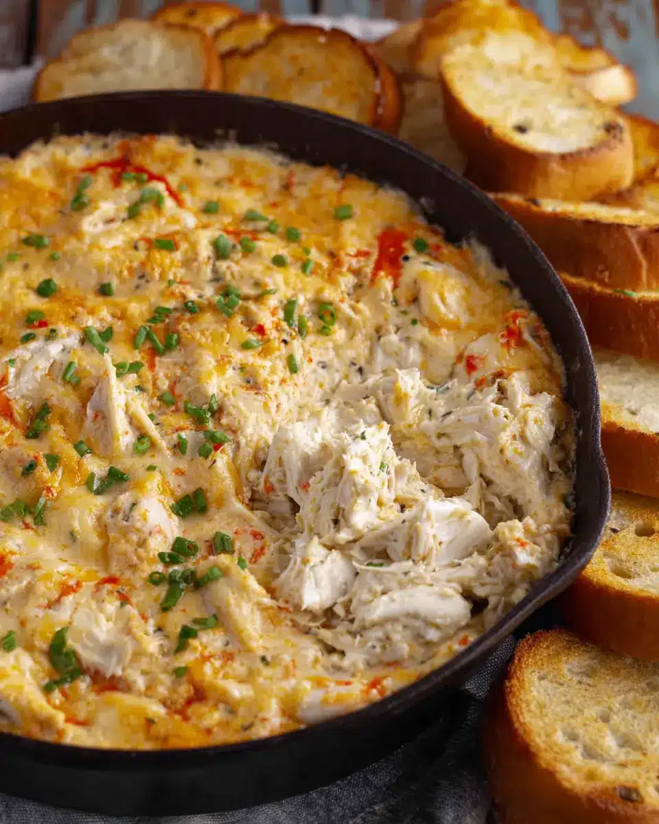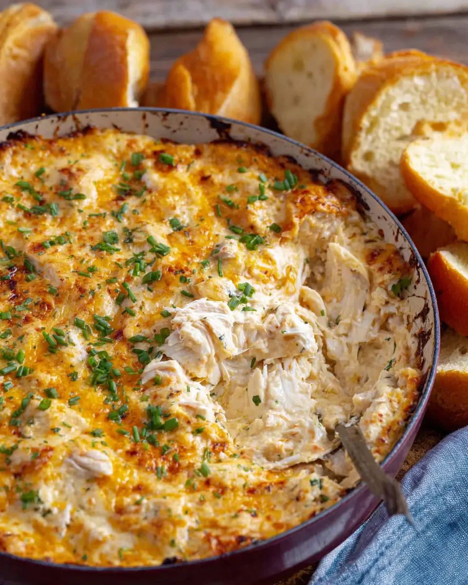 Once baked, let it sit for a few minutes before serving. This dip pairs wonderfully with crackers, sliced baguette, or even crisp vegetables for a fresher touch. Enjoy this creamy crowd-pleaser at your next gathering!