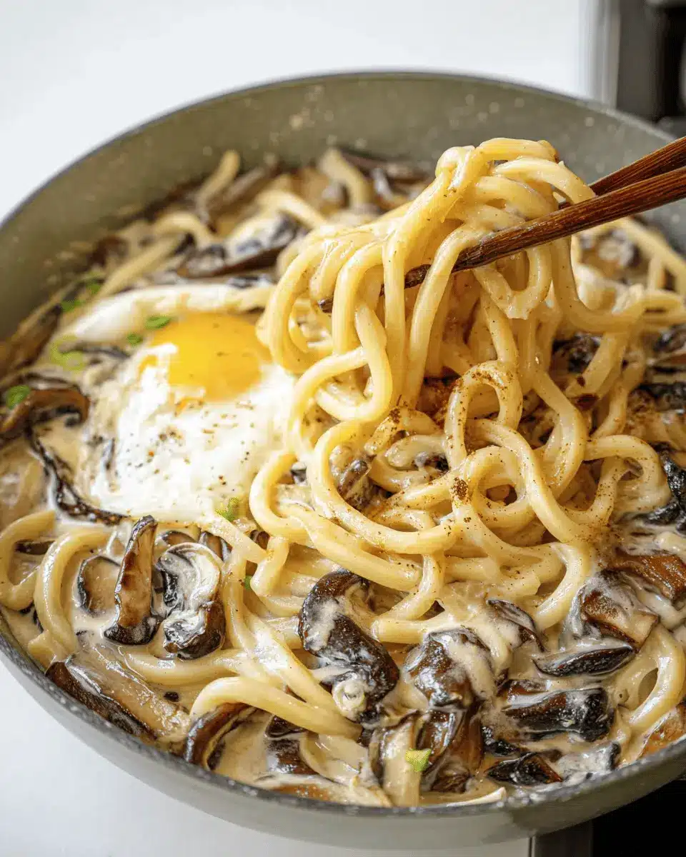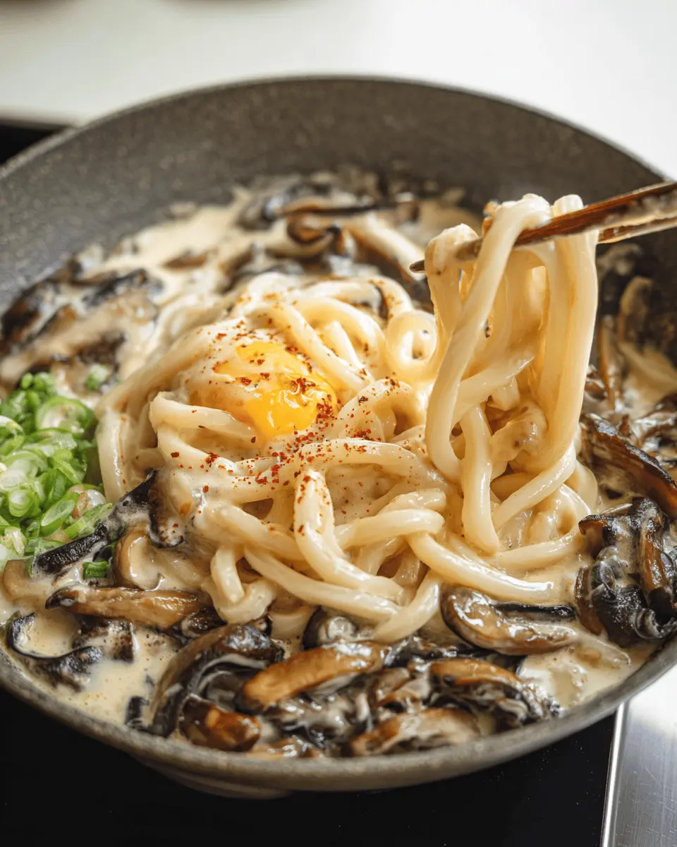 Step-by-step Preparation of Creamy Miso Mushroom Udon