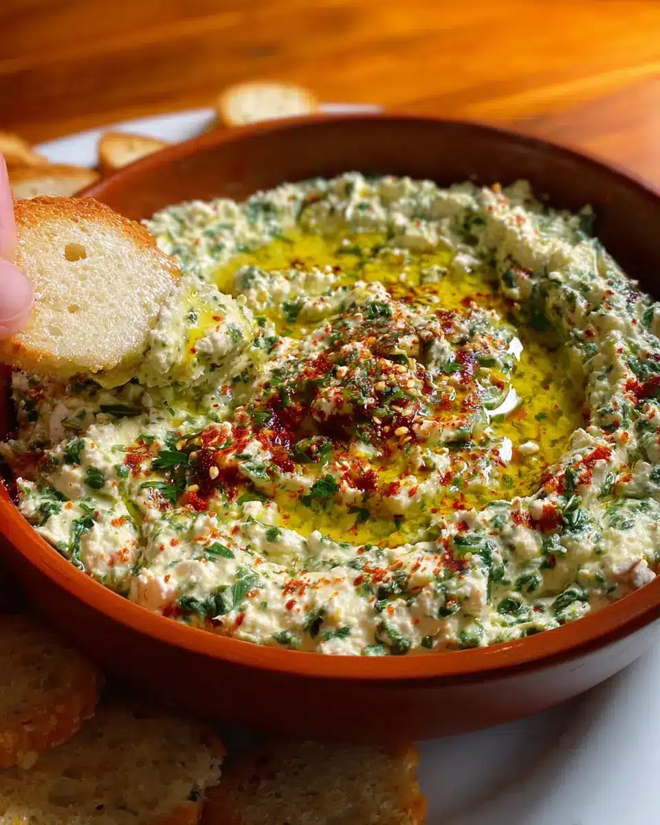 Dippers: Serve with an array of dippers like toasted pita chips, cucumber slices, or carrot sticks. The crunch balances the creamy texture beautifully.
