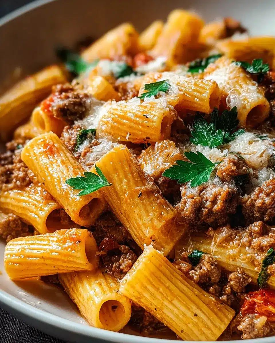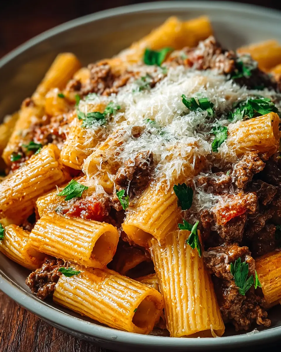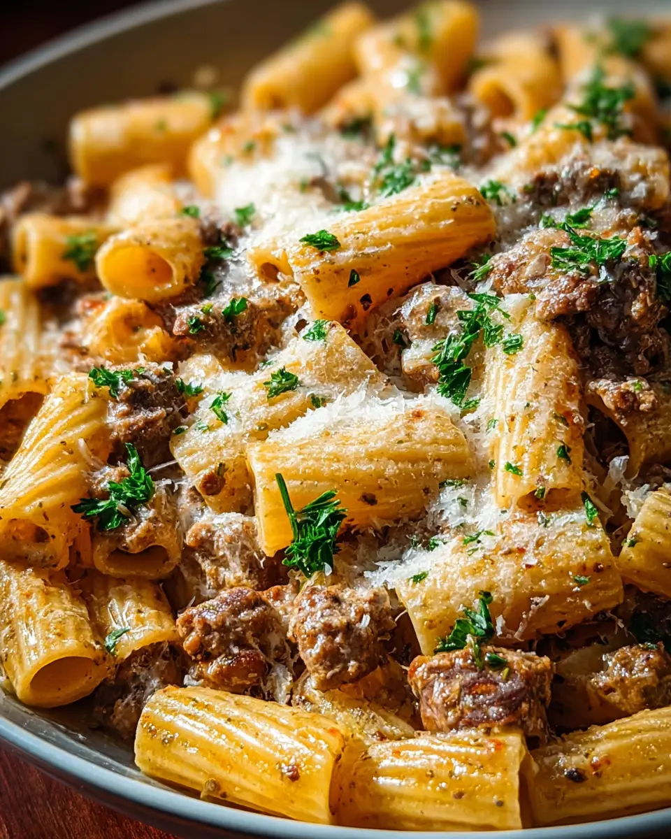 Finally, toss the drained rigatoni into the creamy sauce, adding a little bit of that reserved pasta water as needed to achieve your desired consistency. This step ties everything together, ensuring every piece of pasta is coated with that luscious sauce. Serve hot, and feel free to garnish with a sprinkle of parsley or extra Parmesan for an elegant touch. Enjoy your homemade creamy parmesan beef rigatoni, and prepare to savor the compliments!