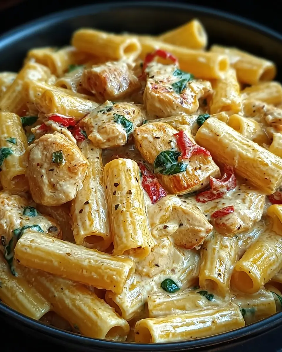Now comes the fun part! Bring back the sautéed chicken into the skillet and toss to coat in your creamy sauce. Gradually add in the cooked pasta, mixing well until everything is beautifully combined. If you find the sauce too thick, just splash in some of that reserved pasta water until it reaches your ideal consistency.