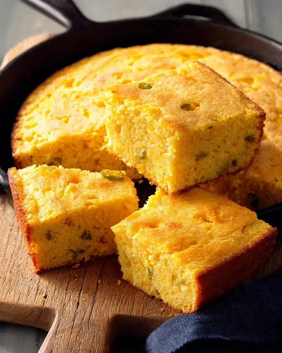 As a Side: This cornbread complements classic Cajun and Creole dishes like gumbo or jambalaya. Its cheesy richness harmonizes perfectly with their spices and flavors.