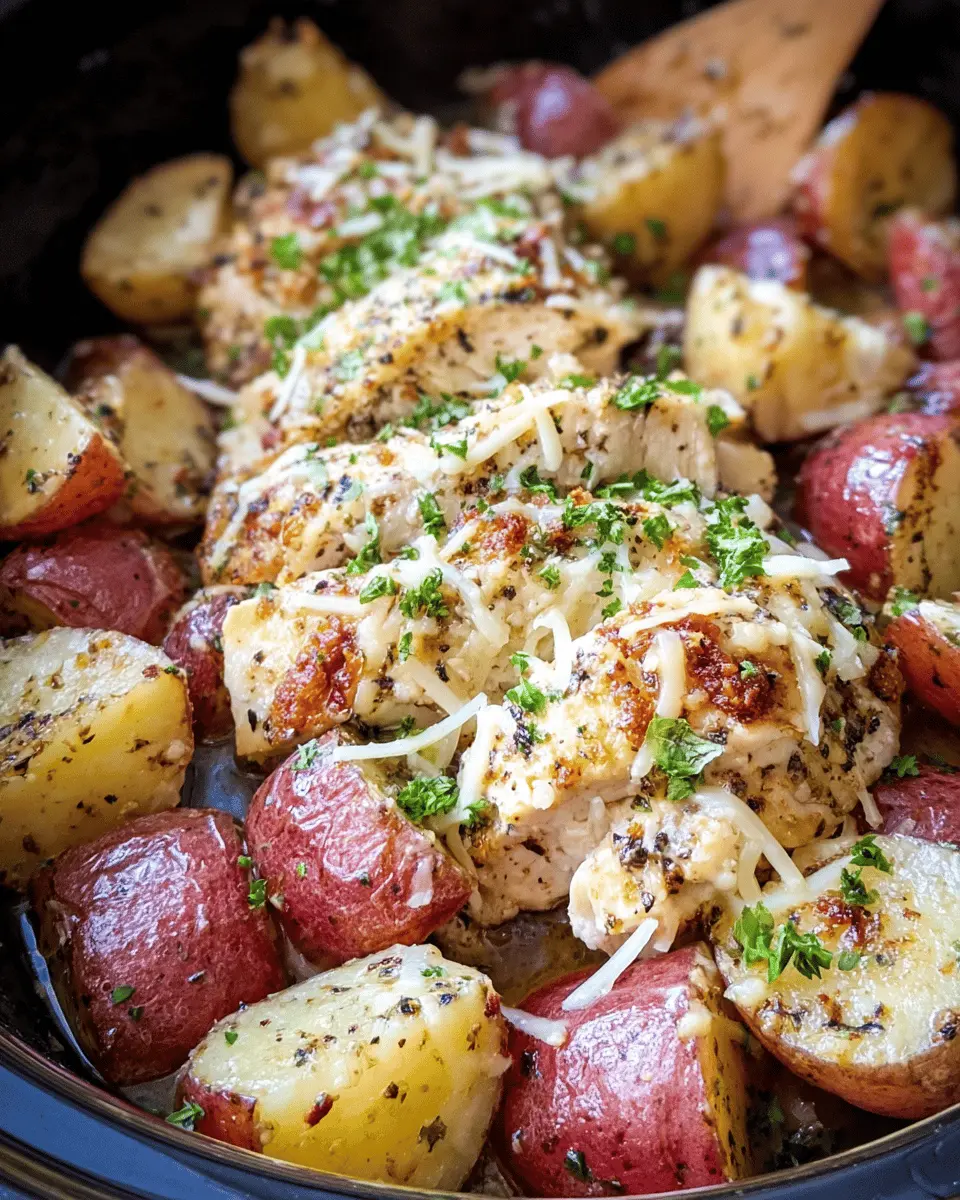 In summary, Crockpot Garlic Parmesan Chicken And Potatoes is a delightful, hassle-free dish that elevates weeknight dinners with minimal effort. Its savory flavors and creamy texture make it an instant hit for any family gathering. Give it a try, and enjoy the warmth it brings to your table!