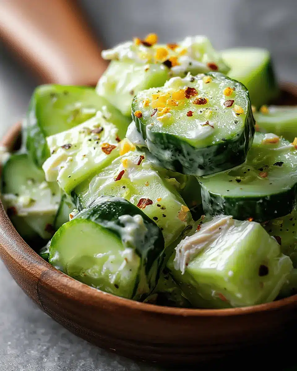 Looking to customize your Cucumber Snack Bowl? Swap out the chicken for other proteins like tofu, shrimp, or hard-boiled eggs. Tofu adds a creamy texture and is a fantastic plant-based option for vegetarians. Shrimp brings a delightful oceanic flavor, while hard-boiled eggs provide a filling boost of protein. Each option brings its unique taste, making your snack bowl even more exciting. Try experimenting to discover which protein suits your palate best!