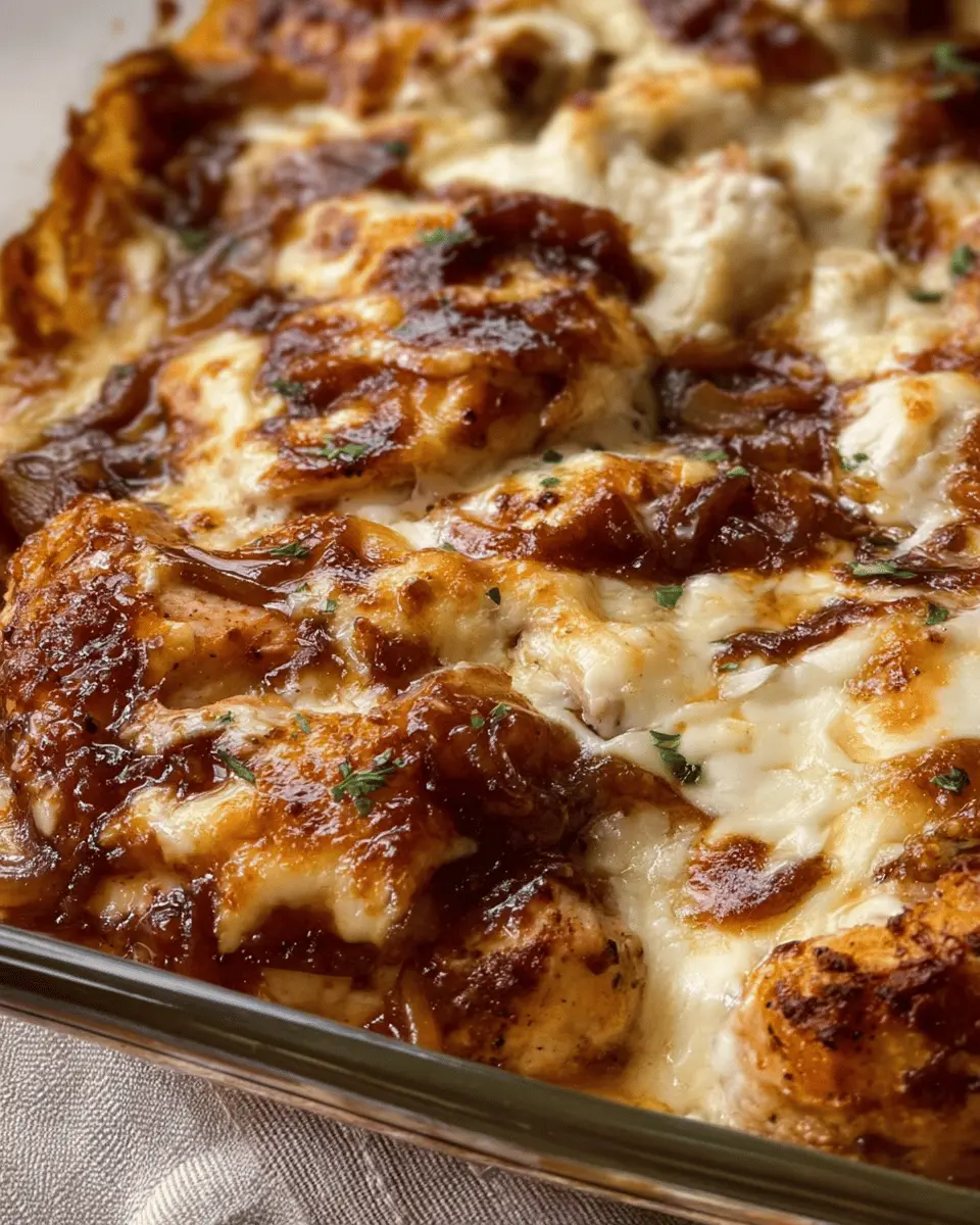 The French Onion Chicken Bake is a delightful dish that combines convenience with rich flavors, perfect for busy weeknights or cozy gatherings. With minimal prep and cook time, you’ll find yourself returning to this simple, yet indulgent recipe time and again. Enjoy every savory bite!