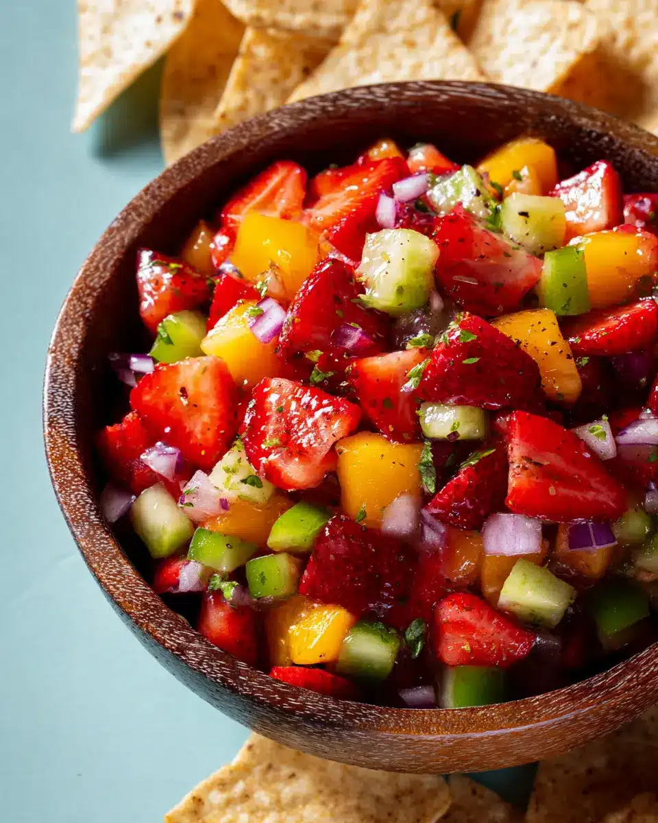 Feeling adventurous? Try serving your fresh fruit salsa in mini cups for individual servings at parties. Alternatively, spoon it over grilled chicken or fish for a vibrant, unexpected topping. You can even use it as a filling for crepes or alongside pancakes at brunch for a colorful start to the day. The versatility of fresh fruit salsa makes it a delightful addition to nearly any meal!