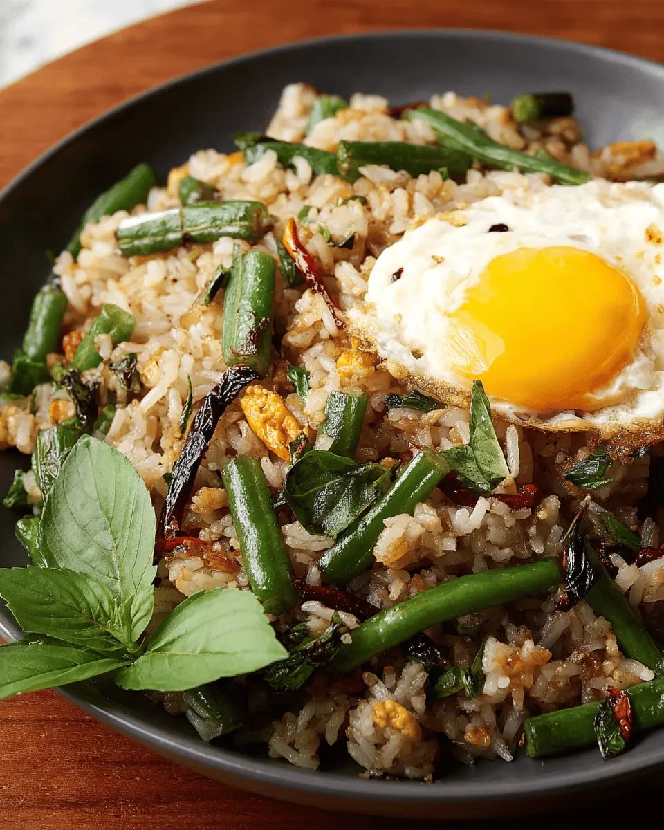 Fried Rice With Blistered Green Beans and Basil Recipe