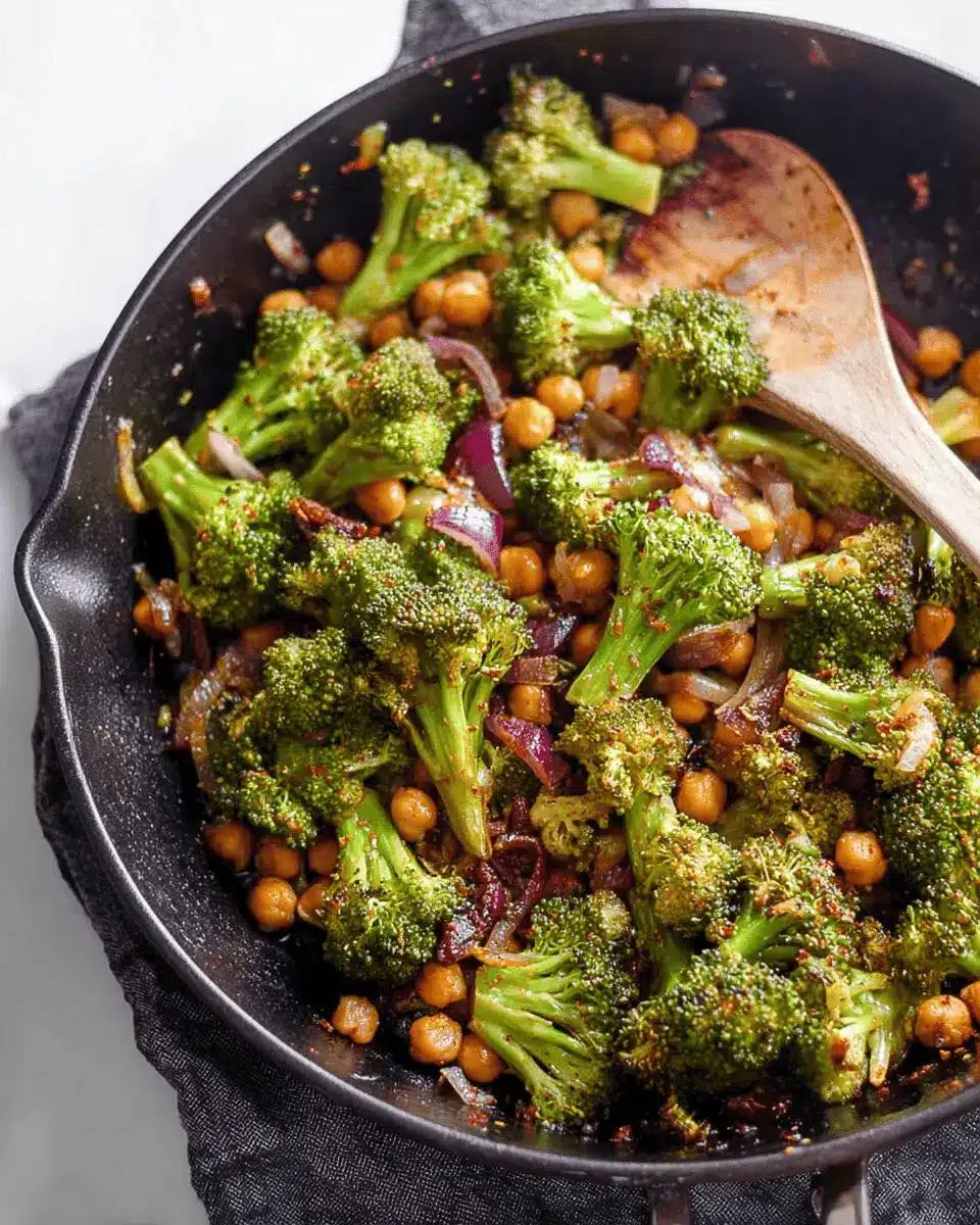 Spicy Garlic Broccoli Stir Fry with Chickpeas