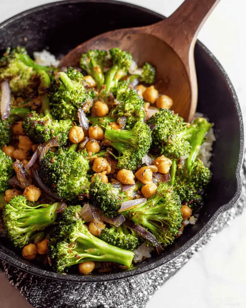 In just 25 minutes, this Garlic Broccoli Stir Fry With Chickpeas brings together vibrant flavors, nutritious ingredients, and ease of preparation. It’s the perfect weeknight meal that anyone can whip up. Enjoy it alone or over rice for a hearty dinner that’s sure to satisfy!
