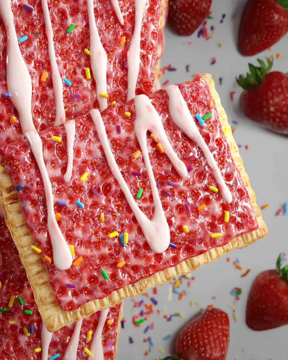 Looking to enjoy a giant strawberry pop tart without the guilt? Opt for whole wheat flour instead of all-purpose flour for a fiber boost. You can also reduce the sugar in the strawberry filling, relying on the natural sweetness of the fruit. Consider using unsweetened applesauce or Greek yogurt in the glaze to cut down on sugar while adding creamy texture.