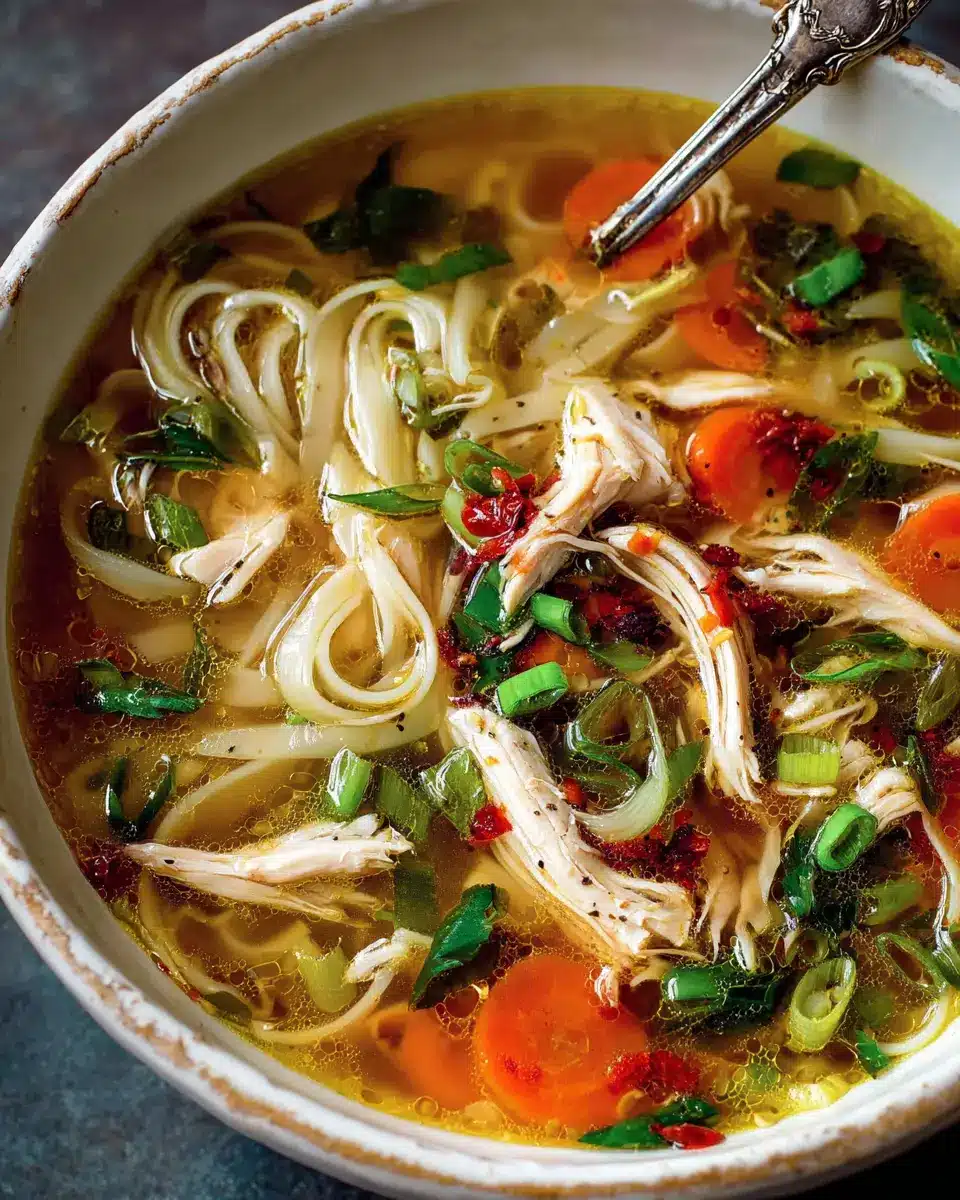 To make your meal visually appealing, serve the Ginger Garlic Chicken Noodle Soup in colorful bowls. Top each serving with fresh herbs like cilantro or basil for a pop of green. Consider adding a drizzle of the chili oil for a glossy finish. Brightly colored garnishes not only elevate the aesthetic but also enhance flavor. For a beautiful touch, pair it with chopsticks, giving your meal an authentic feel. For more enchanting presentation ideas, check out this guide.