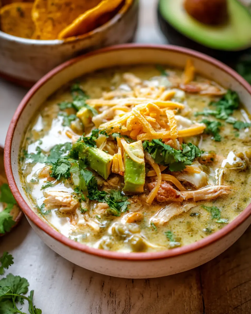 Beyond the health benefits, you can’t beat the joy of loading up your green chicken enchilada soup with fresh toppings like creamy avocado, crunchy tortilla strips, and vibrant cilantro. It’s a communal dish that invites everyone to join in! So next time hunger strikes, ditch the takeout menu and gather your ingredients for a hearty and fulfilling homemade soup experience. For detailed guidance on how to make it, check out the full recipe below!