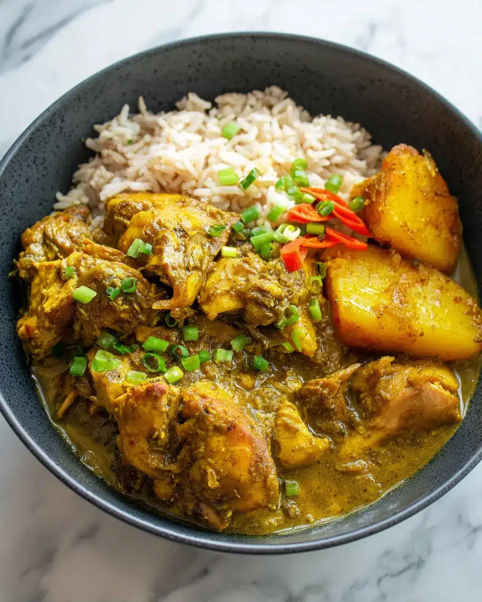 And there you have it—your Jamaican curry chicken is ready to serve! Pair it with some fluffy white rice or spicy fried plantains for a complete meal. Enjoy every bite of this comfort food classic!