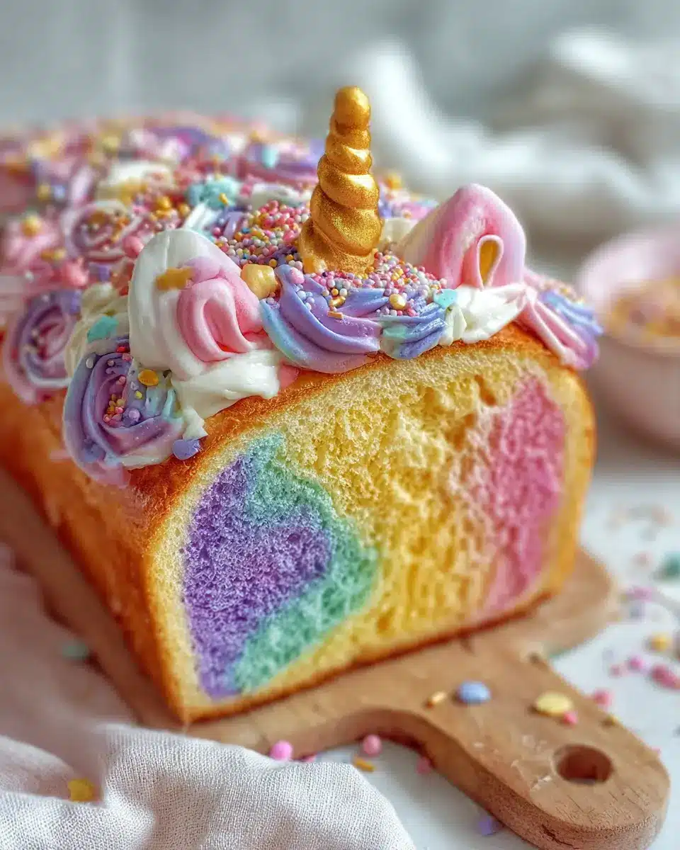 When hosting a gathering, be sure to showcase your magical unicorn bread in style. Use a beautiful cake stand or a rustic wooden platter to present it, adorned with fresh fruit or additional rainbow sprinkles for that extra flair. Slice it into thick pieces and arrange them on the platter, letting the vibrant colors dance together. If you're feeling creative, you could even use cookie cutters to make fun shapes. This whimsy not only satisfies the taste buds but becomes a centerpiece that is sure to spark conversations among your guests. For more tips on presentation, check out The Kitchn.