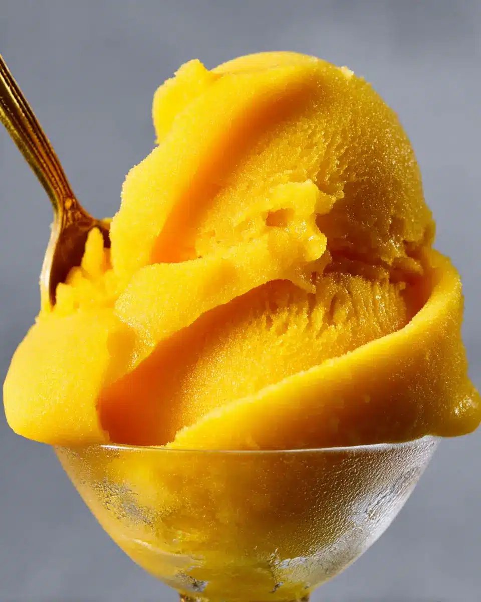 Simple Scoop: Serve a generous scoop of mango sorbet in a chilled bowl or directly in a halved mango for a stunning presentation.