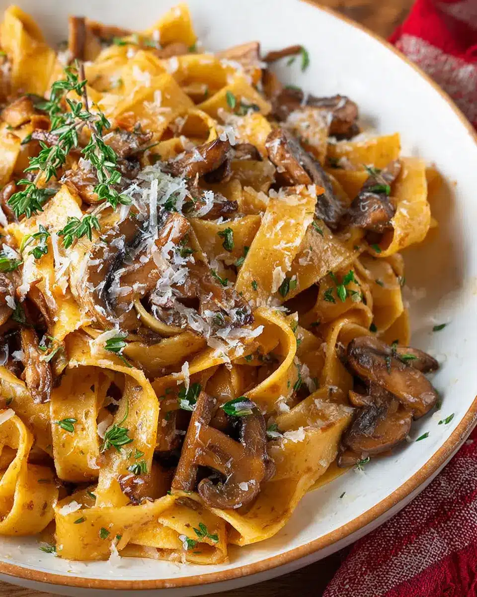 Enjoy creating a comforting bowl of portabella mushroom pappardelle pasta with thyme, and savor not just the meal, but the joy of cooking it!