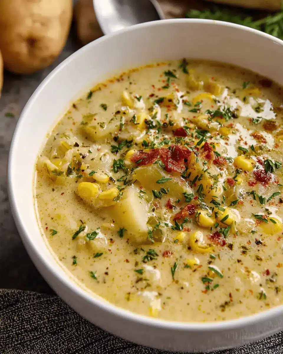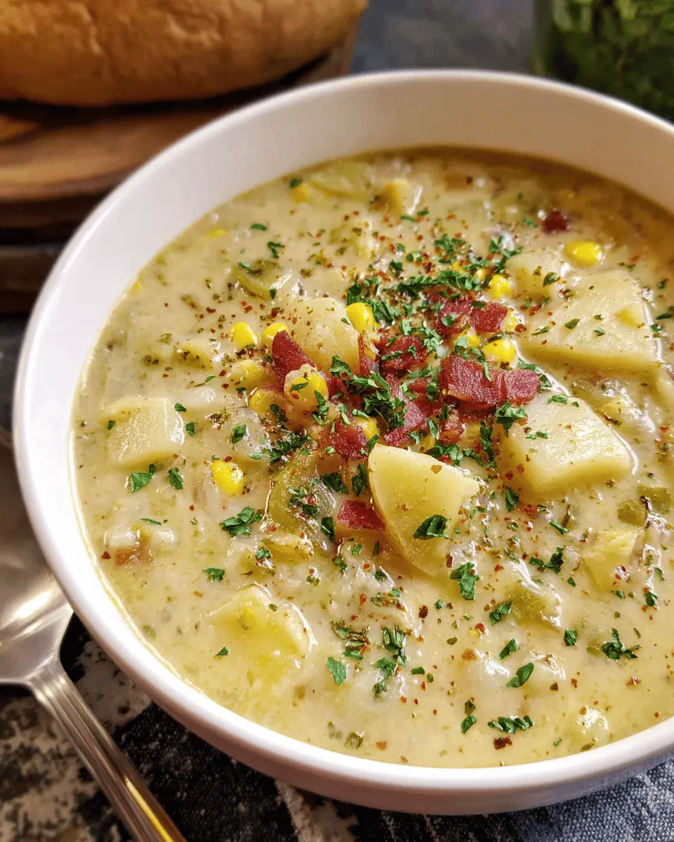 Potato Corn Chowder: Easy Comfort Food with Turkey Bacon Delight