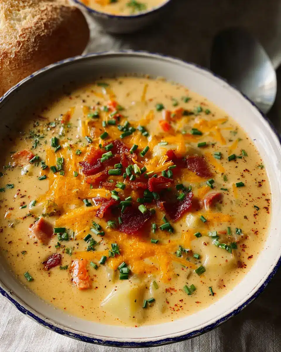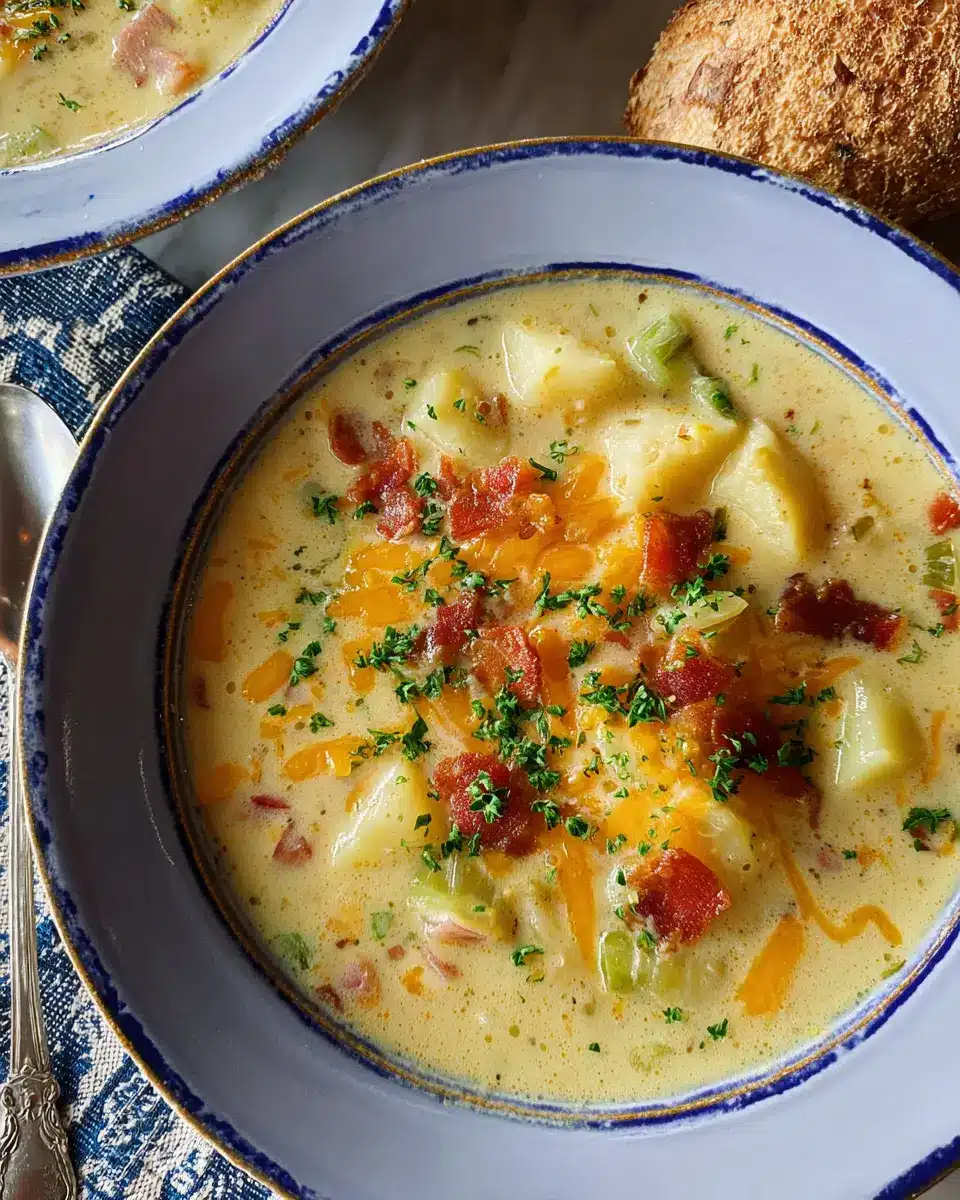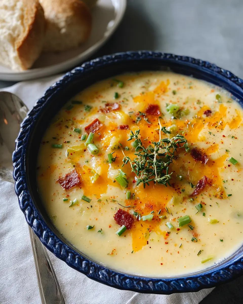 In summary, this potato soup with roasted garlic cheddar cheese is not just a recipe; it’s a warm hug in a bowl. Perfect for chilly evenings or cozy gatherings, its creamy texture and rich flavors will surely win over your taste buds. Don’t forget to customize it to your liking!