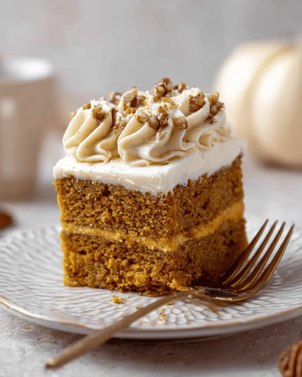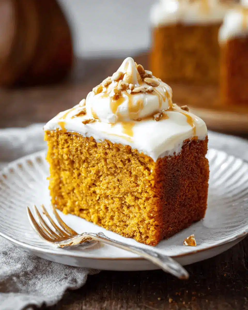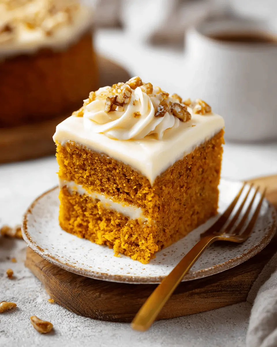 Elevate your pumpkin cake presentation for gatherings! Consider serving it on a rustic wooden board or a colorful cake stand to catch the eye. Garnish with fresh sage leaves or a sprinkle of chopped pecans to add a touch of elegance. For a fun touch, serve individual slices in mason jars with a dollop of cream cheese frosting. Guests will love the personal touch and it’s a great way to showcase your beautiful dessert!