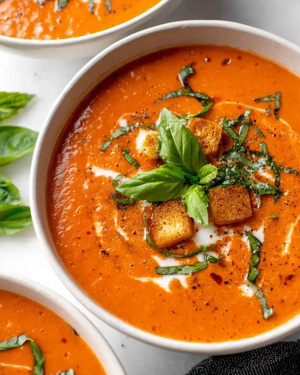 If you’re aiming for a creamier roasted tomato basil soup, dairy alternatives like coconut milk or cashew cream work wonders! They provide that rich texture without the lactose. Almond milk can also be a lighter option, maintaining a pleasant flavor while still being satisfying. Simply stir in your chosen dairy alternative after blending the soup for that cozy, creamy finish. You’ll be surprised at how easy it is to customize this soup to fit your taste and dietary needs.