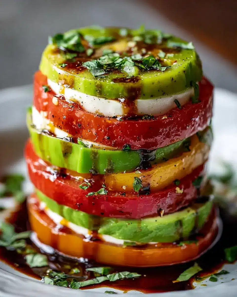 Imagine a garden-fresh feast that's as vibrant on your plate as it is in flavor. This roasted tomato caprese tower with avocado takes the classic Caprese salad to new heights. It’s not just a dish; it’s a culinary experience that pleases both the eye and the palate. The simple combination of fresh ingredients is perfect for any occasion, whether you’re hosting a summer barbecue or enjoying a cozy dinner at home. Plus, it’s vegetarian-friendly, making it an ideal choice for diverse diets.