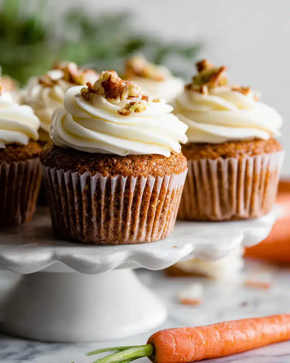 Don't underestimate the power of presentation! Elevate your simply carrot cake cupcakes by adding decorative touches. Top each cupcake with a swirl of cream cheese frosting, then sprinkle finely chopped walnuts or pecans on top. For an extra touch, consider using white chocolate carrot toppers. If you're feeling creative, you can even use colorful edible flowers or a light dusting of cinnamon for a pop of color. These simple decor ideas make your cupcakes not just delicious, but also visually stunning!