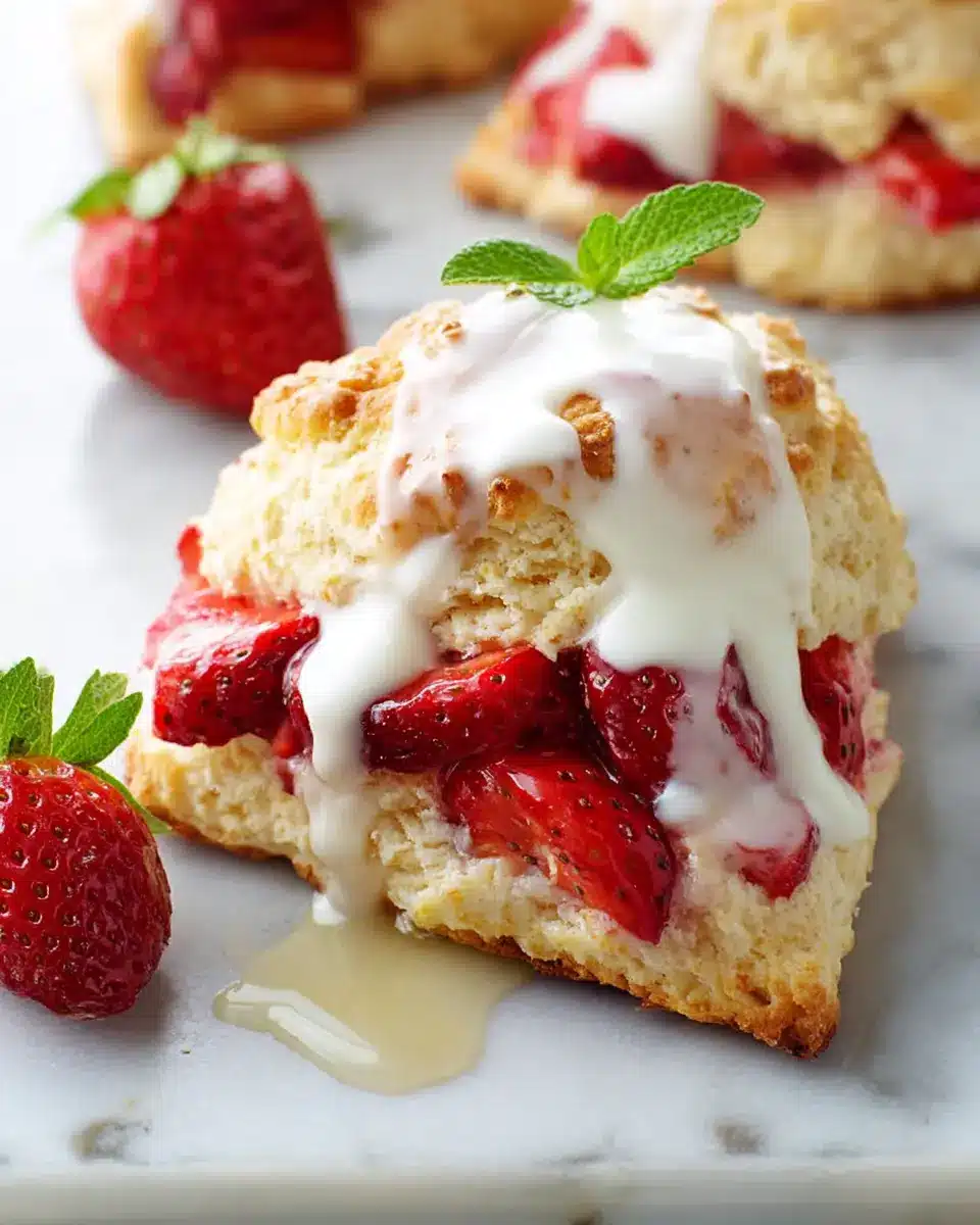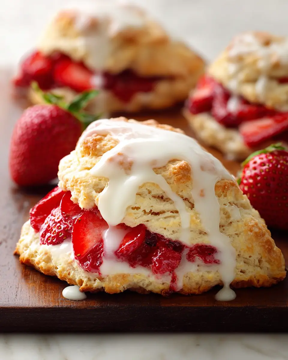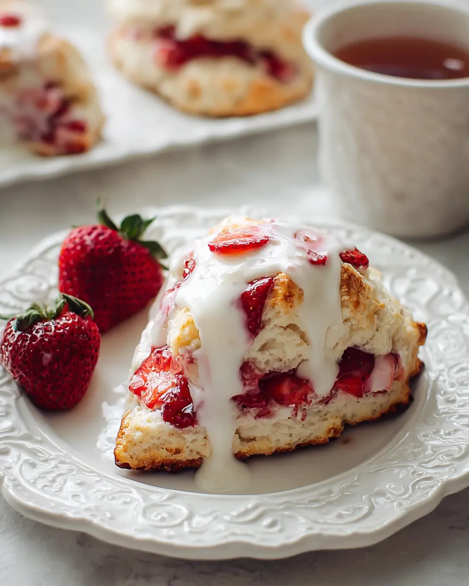 Enjoy these delightful strawberries and cream scones fresh out of the oven, drizzled with your homemade glaze. They’re perfect for brunch or a cozy afternoon tea!