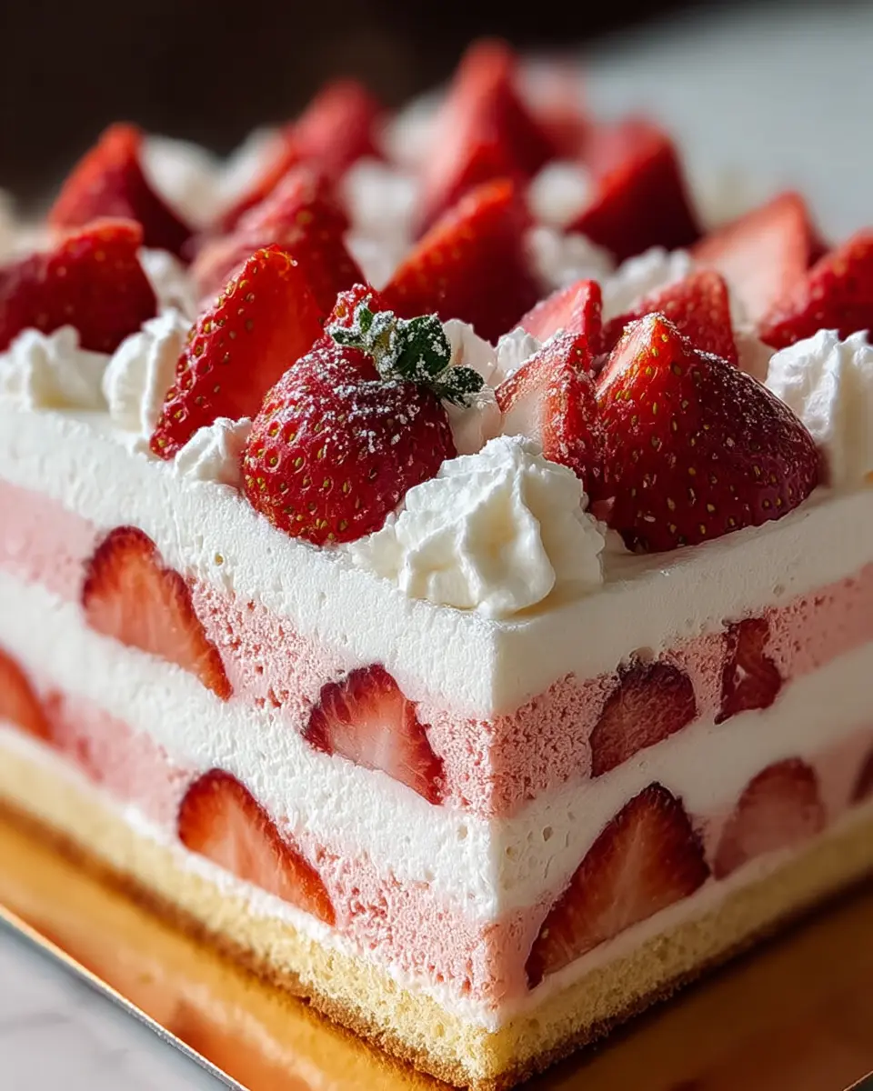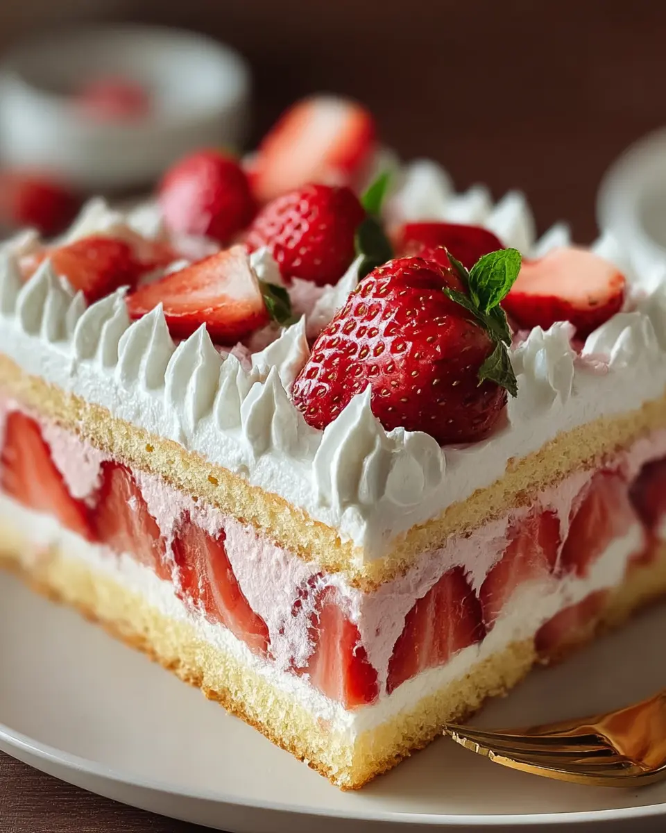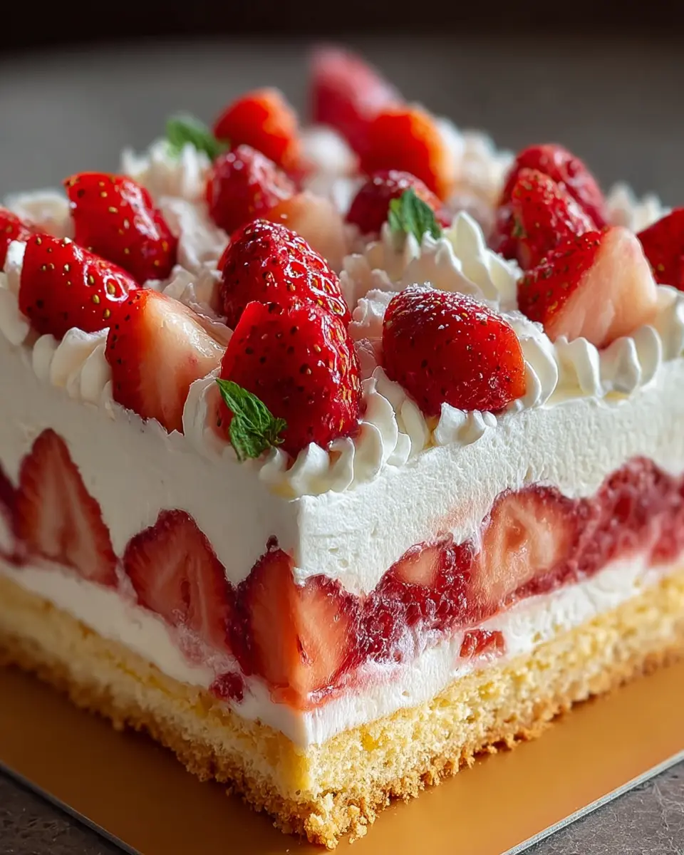 Imagine a cake that's not only visually stunning but also bursts with flavor – that’s the essence of a Strawberry Cream Square Cake. This delightful dessert combines the rich, moist texture of a homemade vanilla cake with the fresh sweetness of strawberries and a cloud of creamy topping. Perfect for any occasion, whether it’s a backyard barbecue or a cozy dinner party, this dessert is sure to impress.