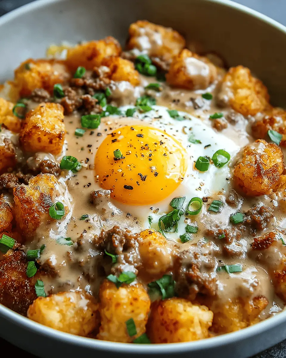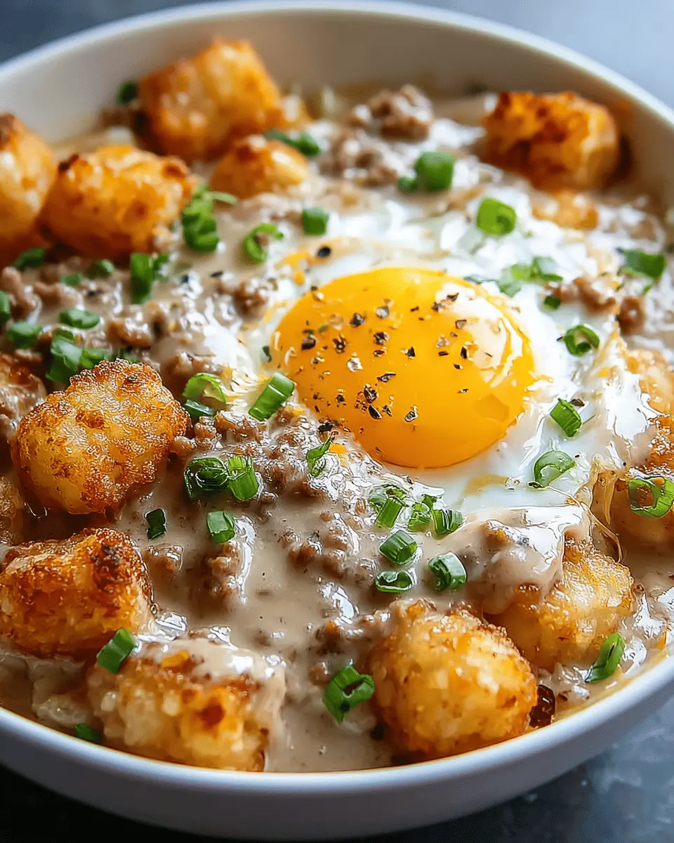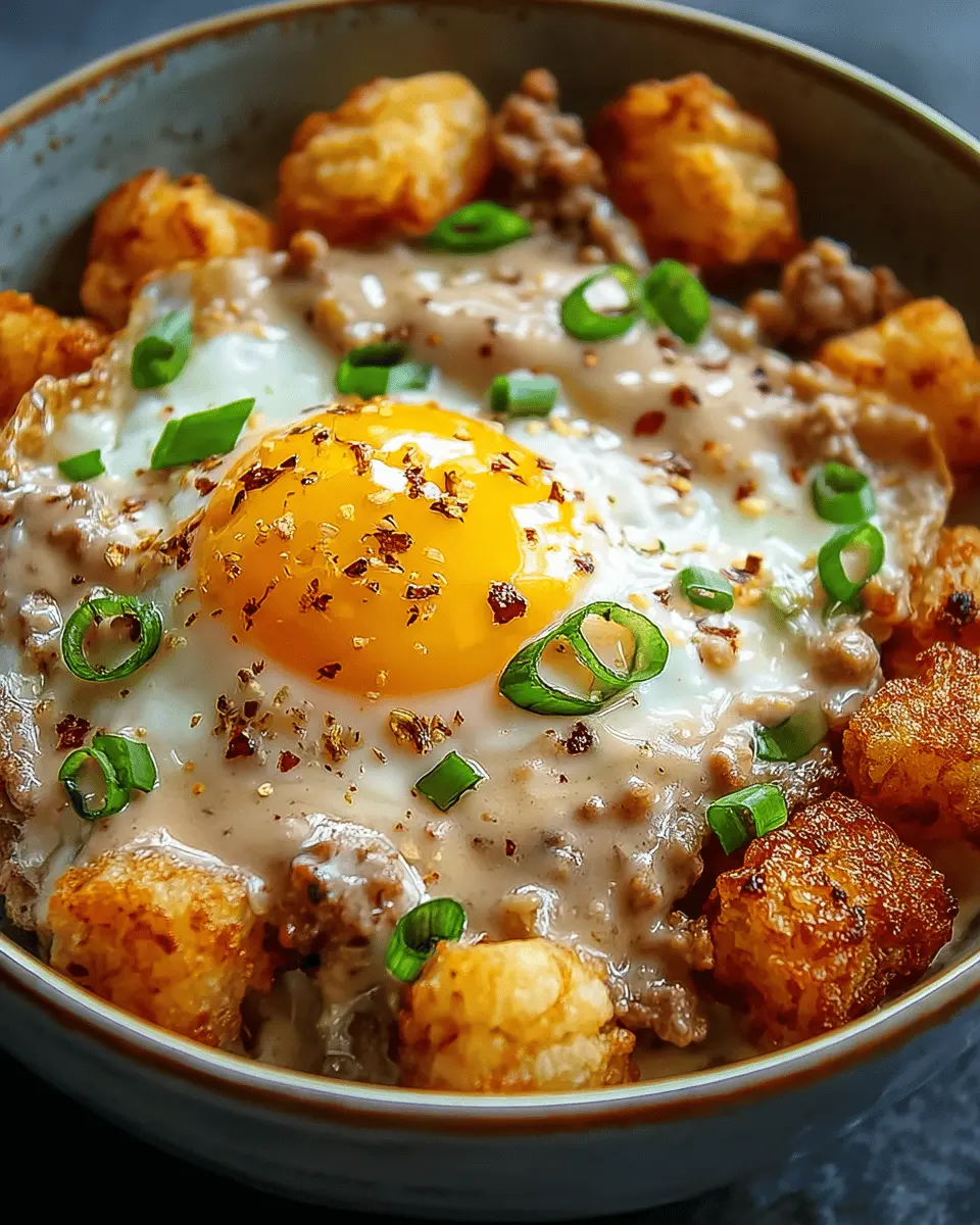 Tater Tot Breakfast Bowl with Sausage Gravy