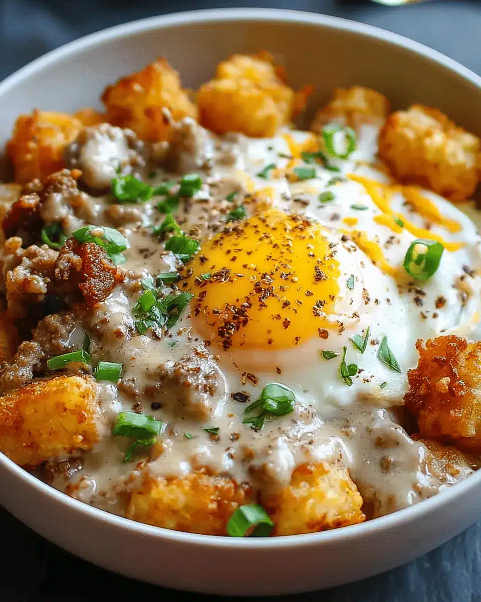 Tater Tot Breakfast Bowl with Sausage Gravy