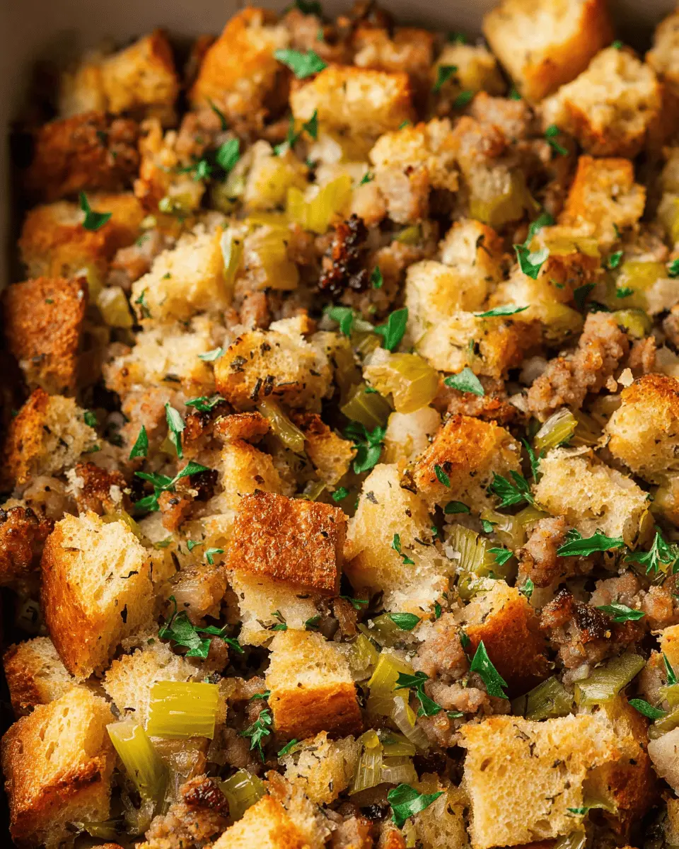 Imagine this: the comforting scent of sautéed onions and celery mingling with the robust aroma of turkey sausage while fresh herbs infuse the kitchen. This stuffing brings a heartwarming touch to your dinner table, complementing everything from roasted turkey to savory chicken ham. Plus, it’s incredibly versatile. Feel free to customize it with your favorite ingredients, such as adding nuts for crunch or dried fruits for a hint of sweetness.