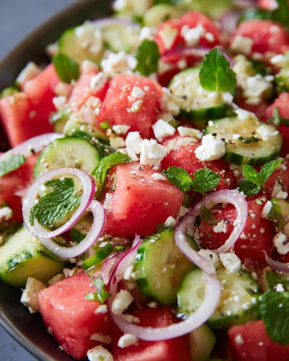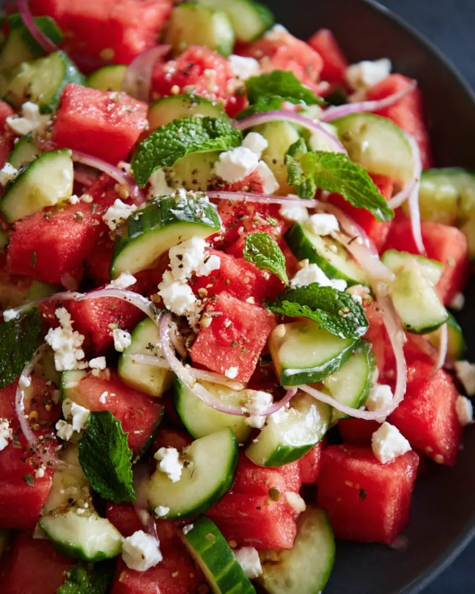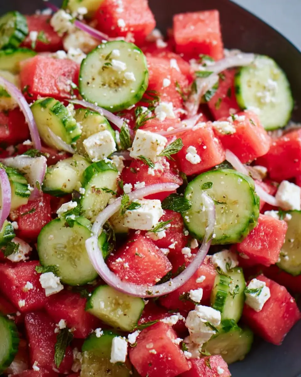 This Watermelon, Cucumber, and Feta Salad is not just refreshing but also nutritious, clocking in at approximately 217 calories per serving. Packed with hydration from watermelon and cucumbers, it’s an ideal summer dish!